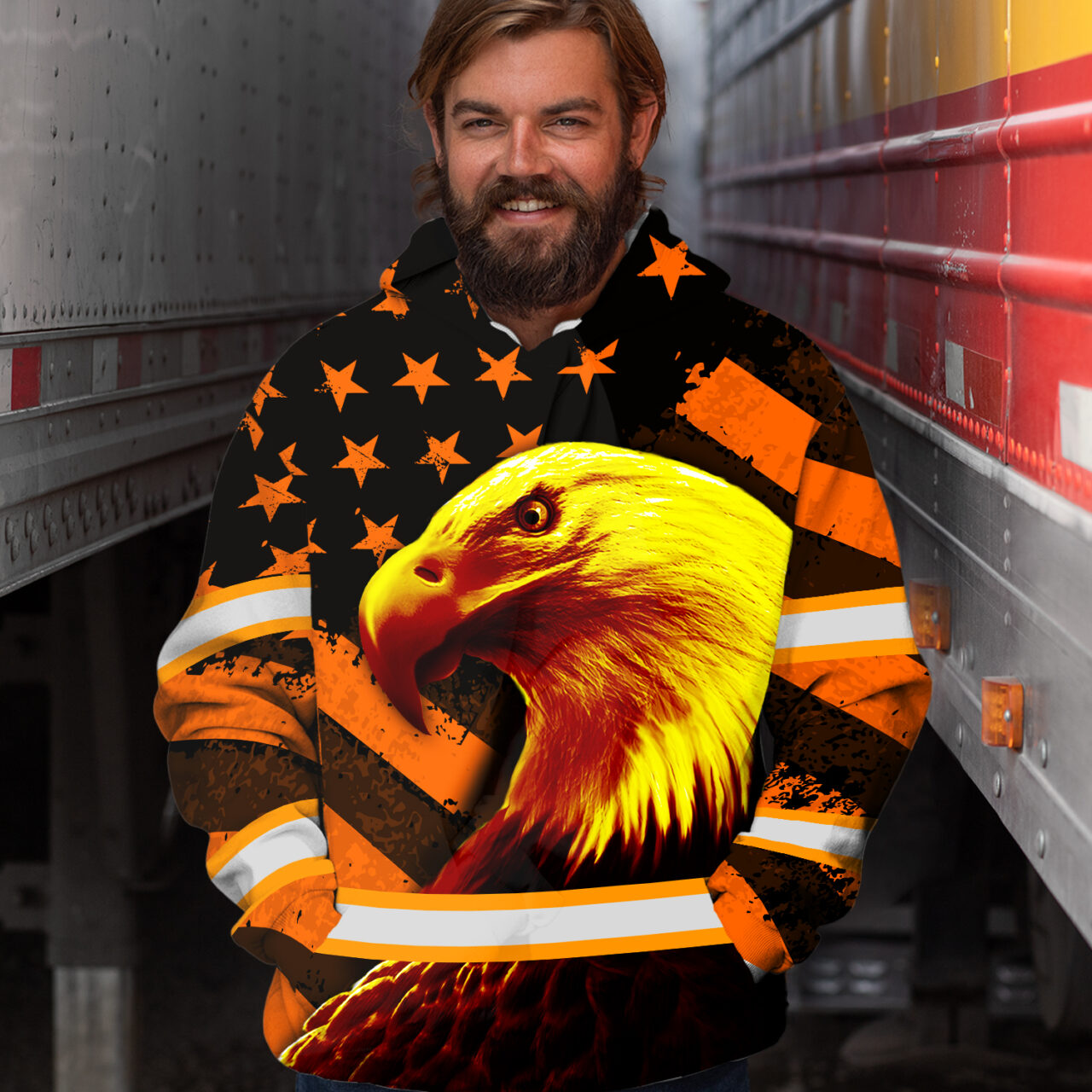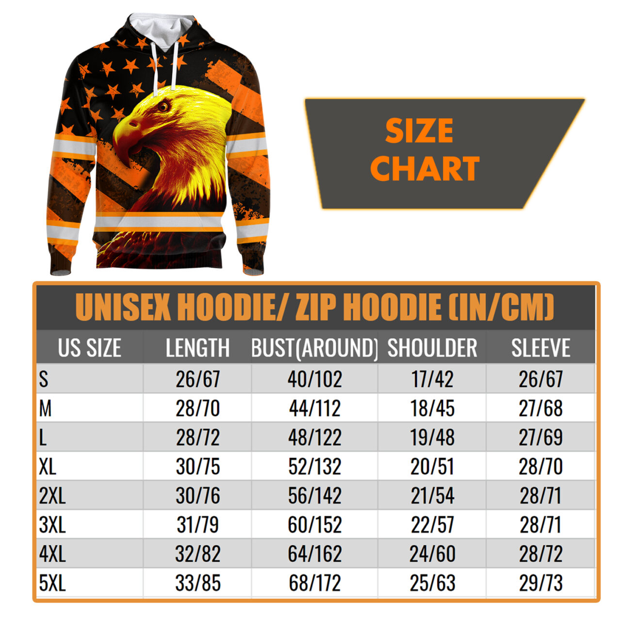 Hi Vis Hoodie Reflective Eagle Us Flag Orange Safety Workwear For Workers, Runners, Cyclists, Patriotic Key Features