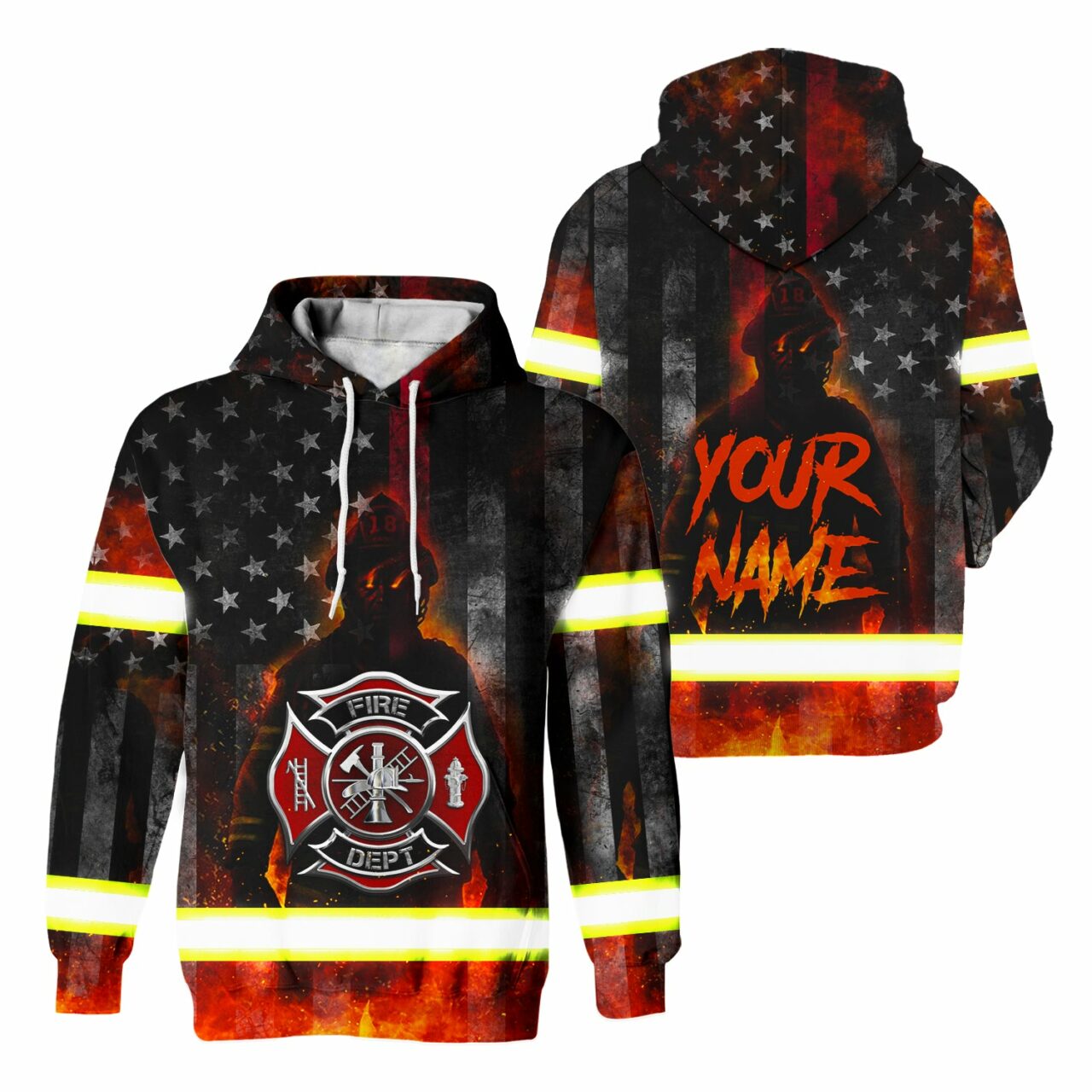 Hi Vis Hoodie Reflective Firefighter Thin Red Line Custom Name Safety Workwear