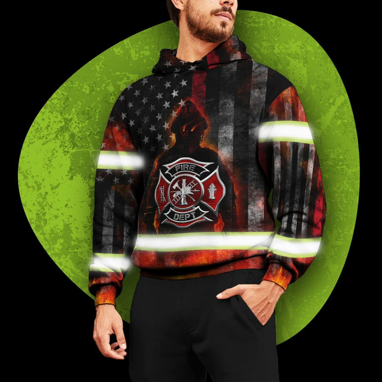 Hi Vis Hoodie Reflective Firefighter Thin Red Line Custom Name Safety Workwear Description