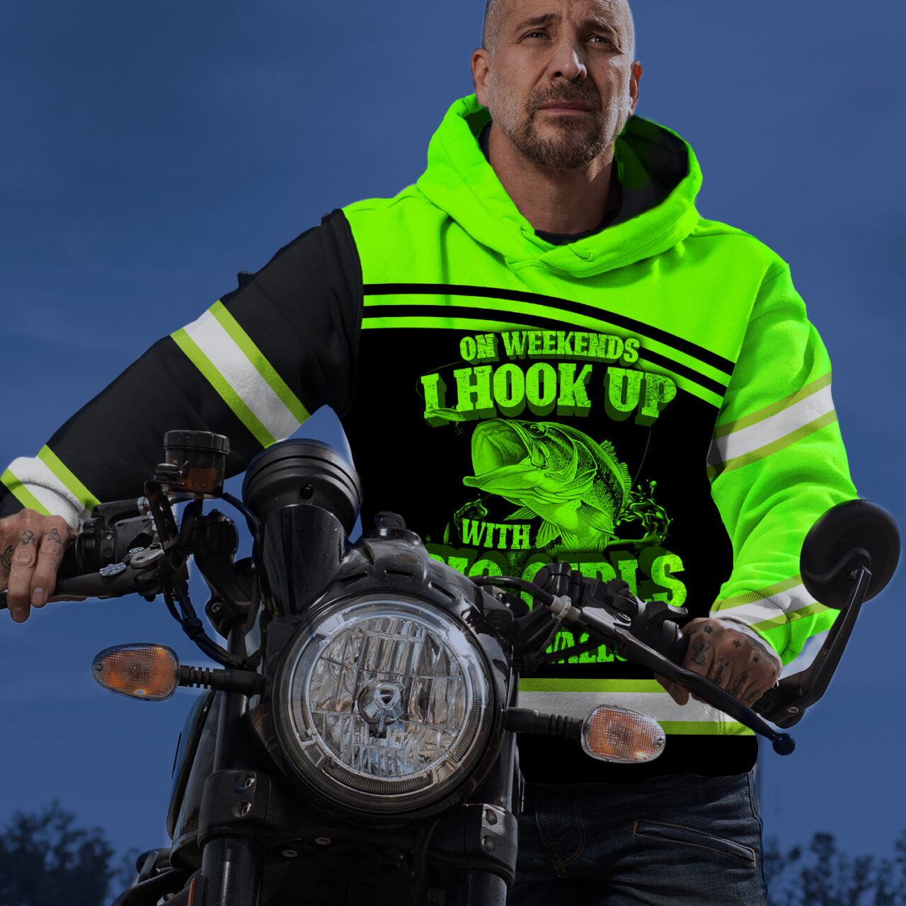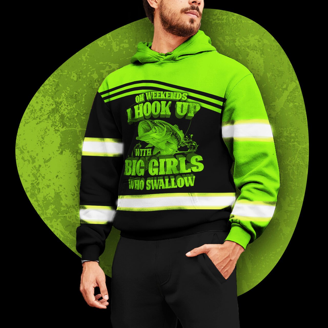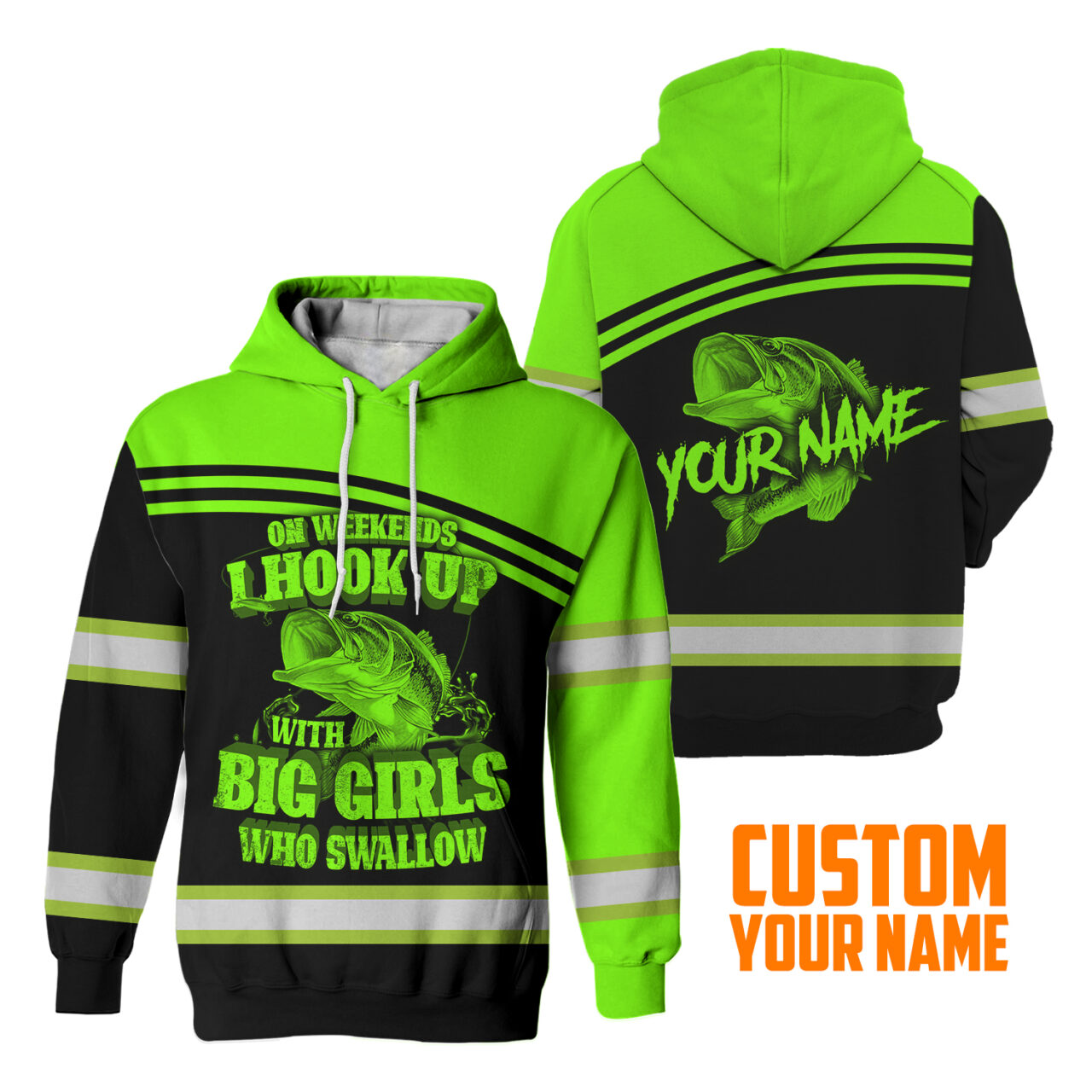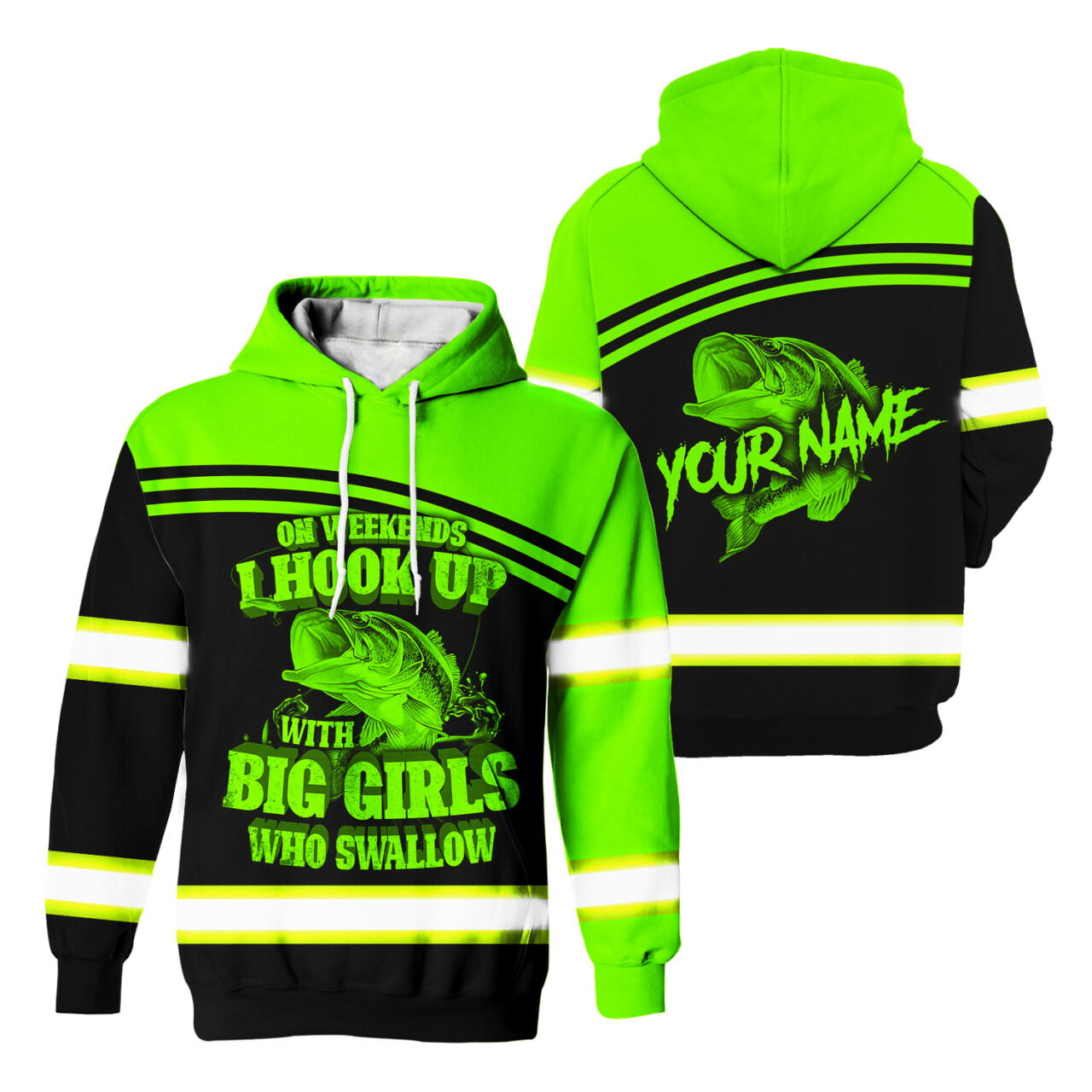 Hi Vis Hoodie Reflective Fishing Custom Name Safety Workwear For Fishing Lovers, Fishermen, Workers, Runners, Cyclists, Trucker, Operator, Patriotic
