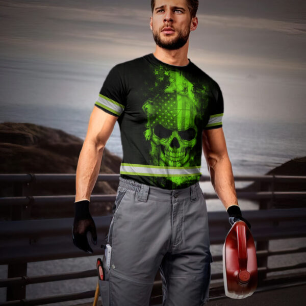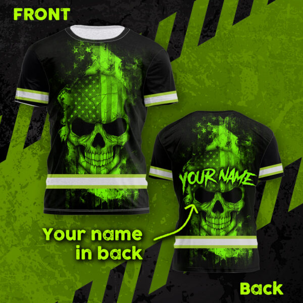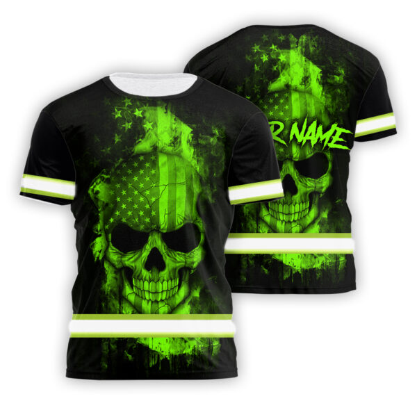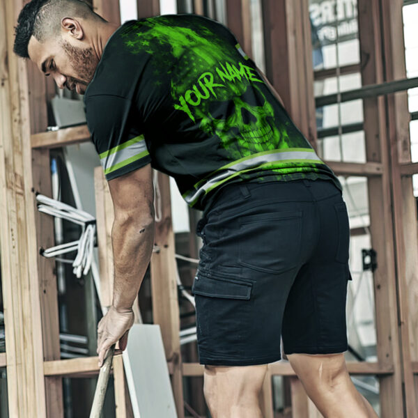 Hi Vis Hoodie Reflective Green Neon Skull US Flag Custom Name Safety Workwear
