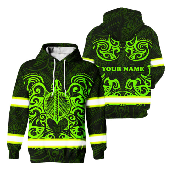 Hi Vis Hoodie Reflective Hawaii Turtle Tribal Custom Name Safety Workwear For Workers, Runners, Cyclists, Truckers
