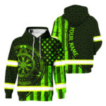 Green Hoodies Mens Green Neon Water Color American Flag Patriotic Custom Name Safety Workwear For Runners, Cyclists, Truckers, Operator