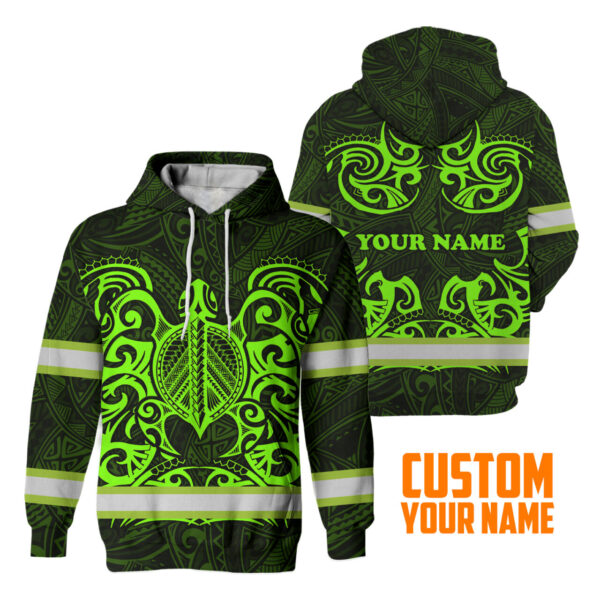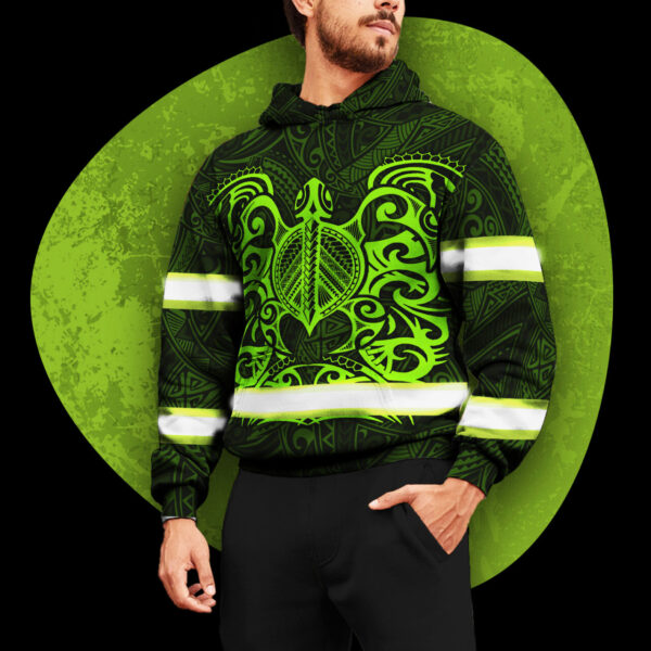 Hi Vis Hoodie Reflective Hawaii Turtle Tribal Custom Name Safety Workwear For Workers, Runners, Cyclists, Truckers quantity
