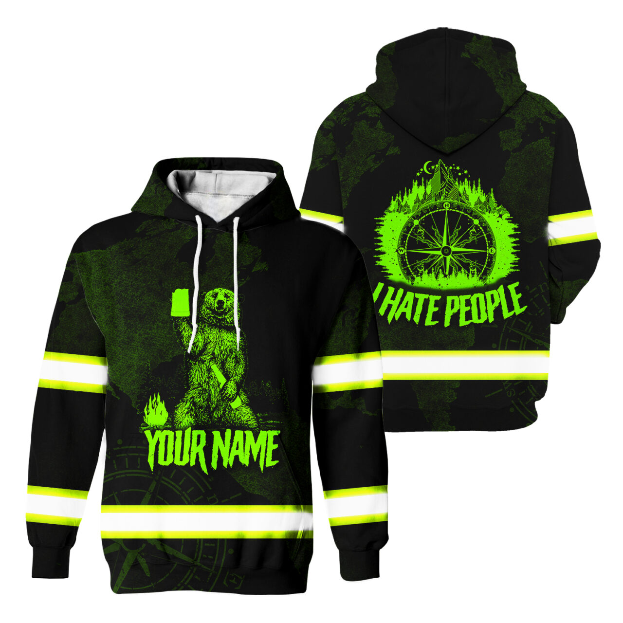 Hi Vis Hoodie Reflective Hiking Green Neon I Hate People Safety Workwear