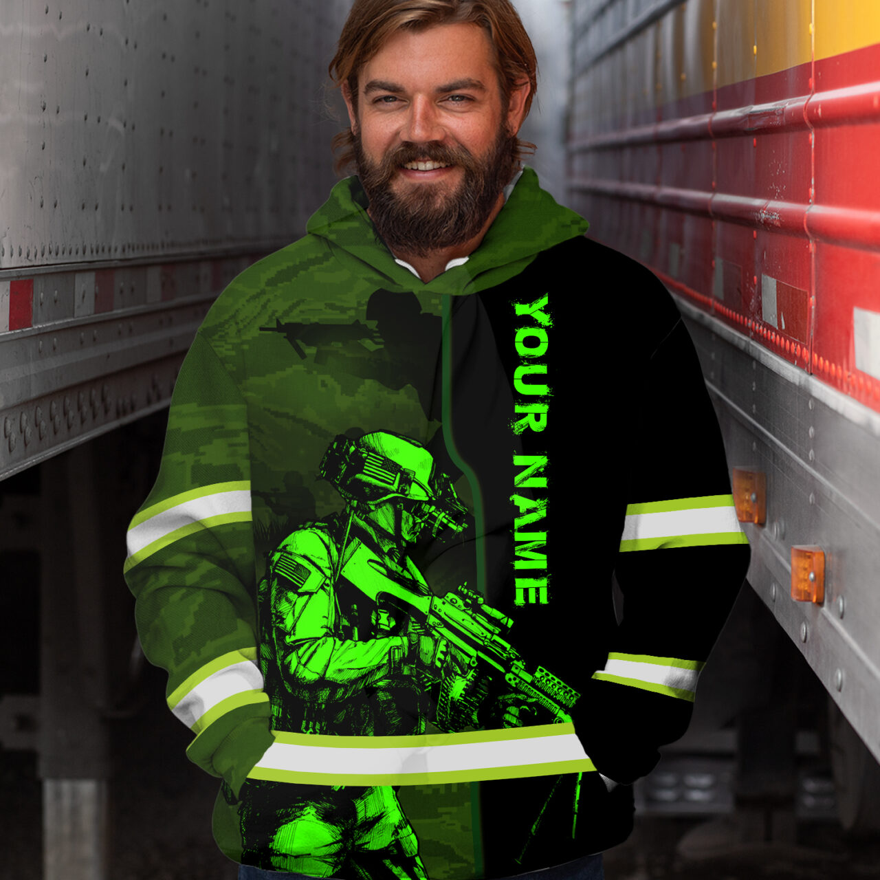 Looking for a highly visible hi vis hoodie? Check out this Military Soldier Custom Name, and reflective green neon safety clothing! Workers who must be seen at all times will love this unusual hoodie. The vivid green are guaranteed to catch people’s attention, and the personalized state and name give it a special touch. This hi-vis hoodie is sure to do the trick whether you’re searching for something special for your team or just want to stand out from the crowd!