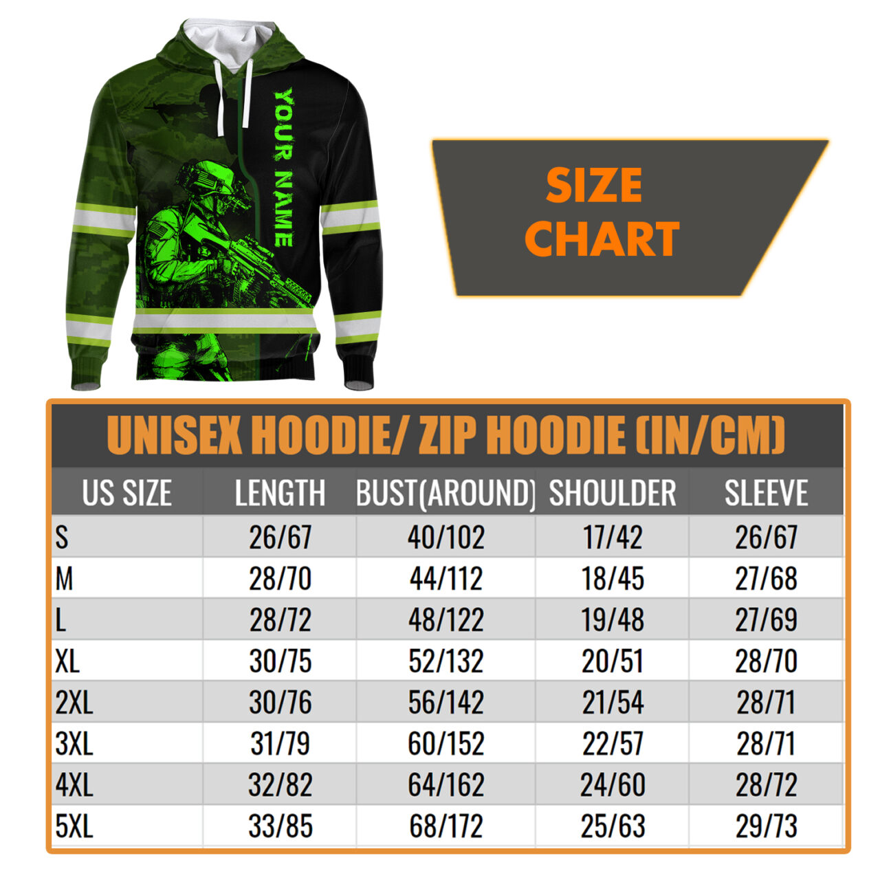 Hi Vis Hoodie Reflective Military Soldier Custom Name Safety Workwear