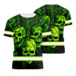 Hi Vis Shirt Reflective Tapes Green Neon Skulls Hanging On Chain Safety