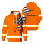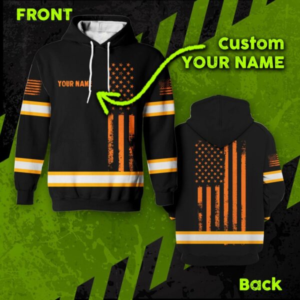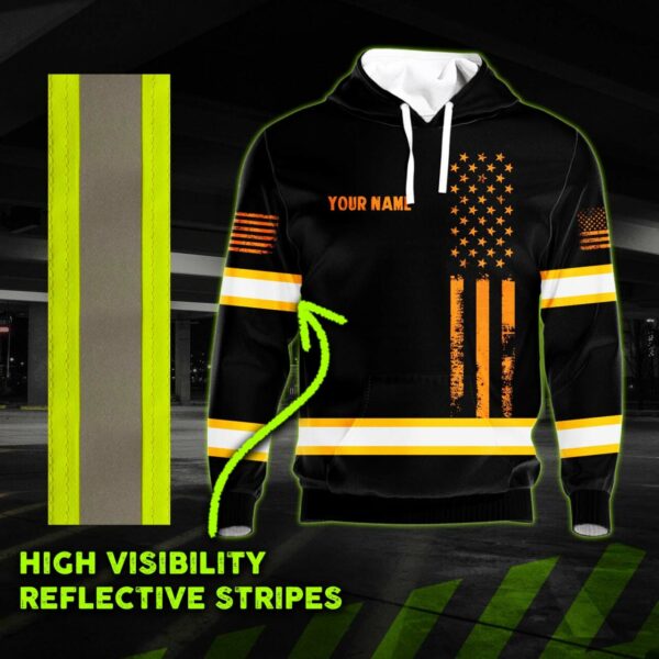 Hi Vis Hoodie Reflective Scratch Orange Neon US Flag Custom Name Safety
