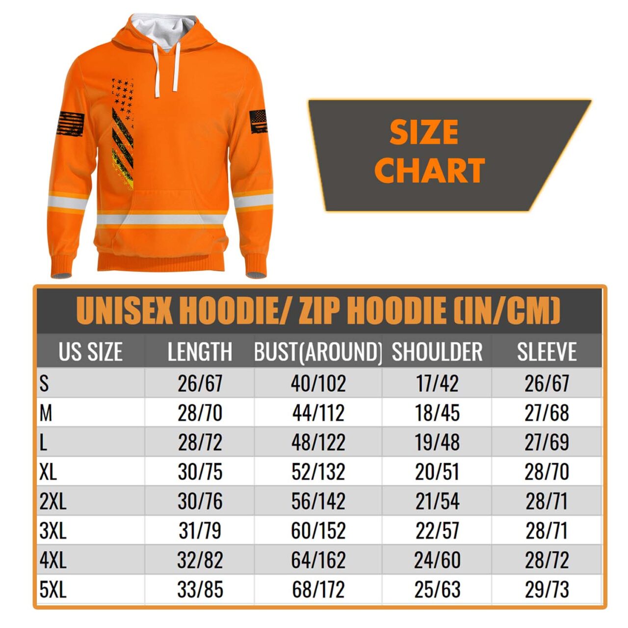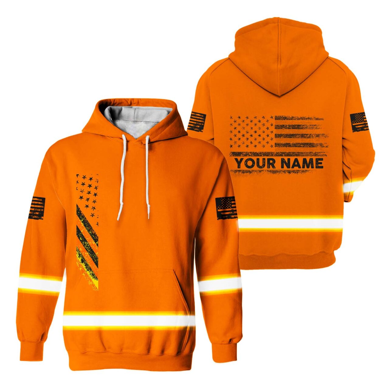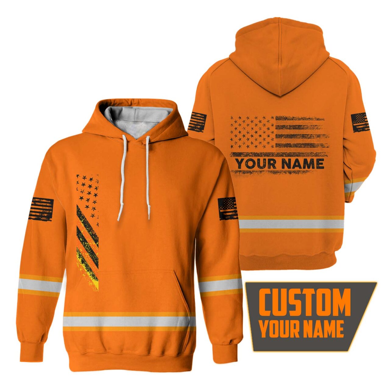Hi Vis Hoodie Reflective Orange USA Flag Custom Name Safety Workwear For Worker, Operator, Trucker