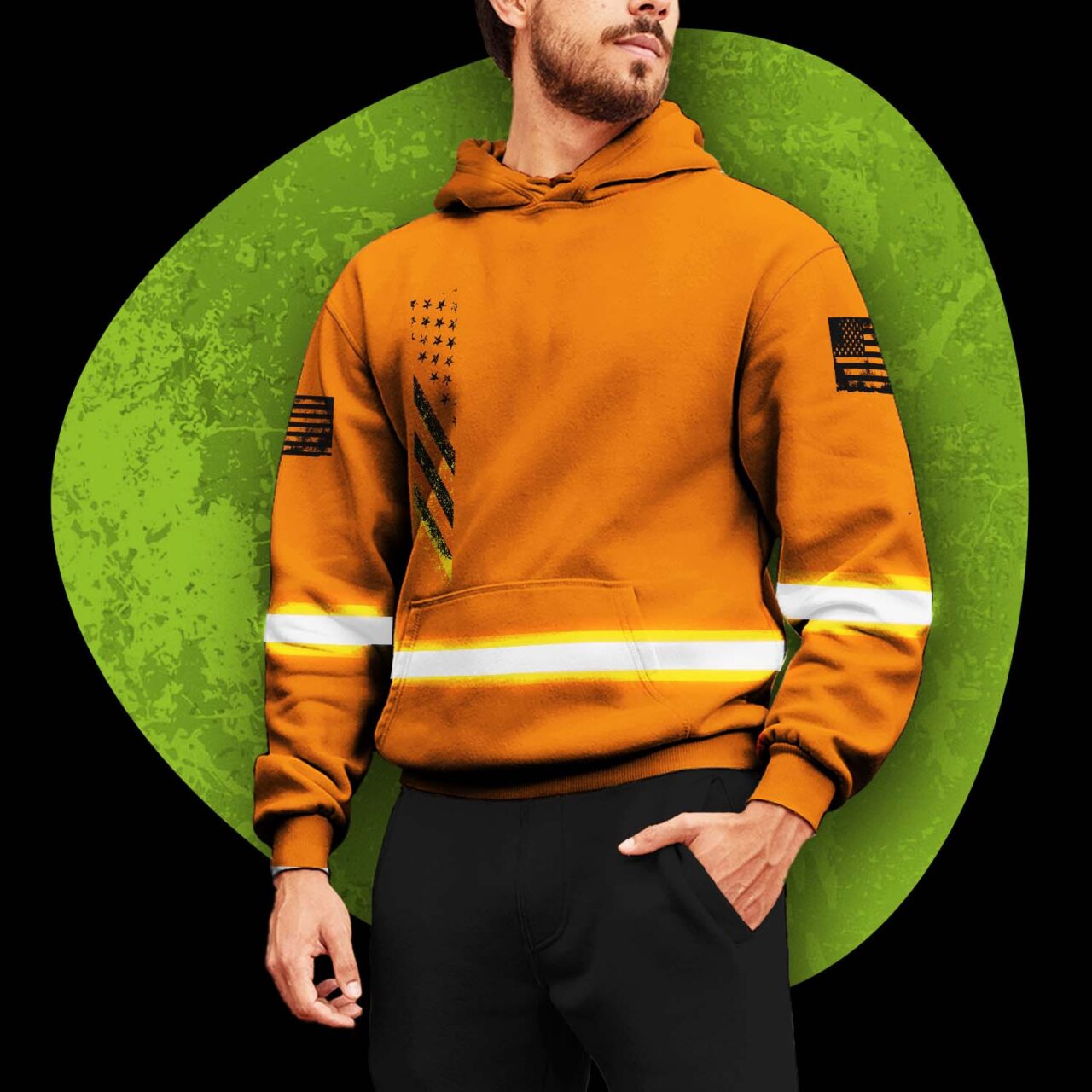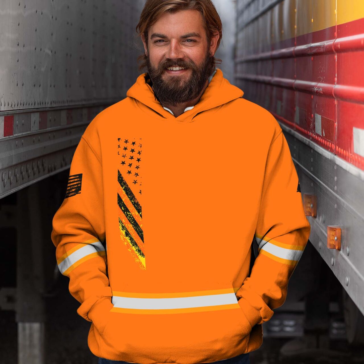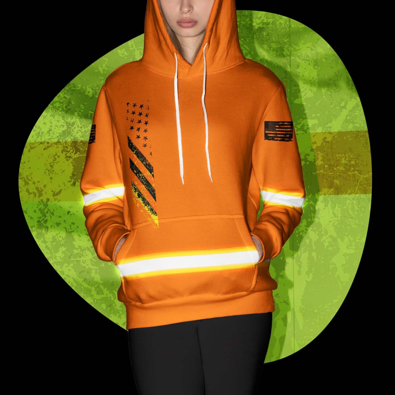 Hi Vis Hoodie Reflective Orange USA Flag Custom Name Safety Workwear For Worker, Operator, Trucker