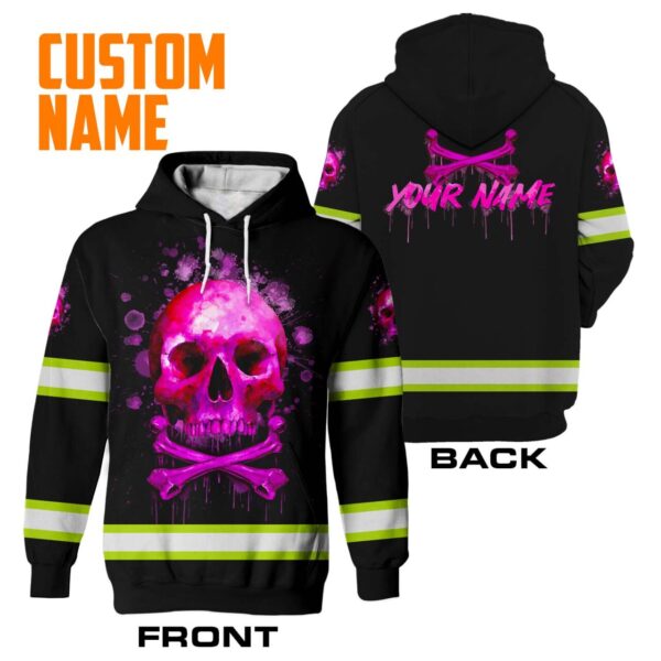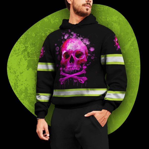Hi Vis Hoodie Reflective Pink Neon Skull Watercolor Custom Name Safety Workwear For Workers, Runners, Cyclists, Patriotic