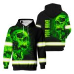 Reflective Safety Hoodie Green Neon Skull Custom Name Safety Workwear For Runners, Cyclists, Skull Lover