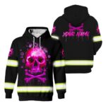 Hi Vis Hoodie Reflective Pink Neon Skull Watercolor Custom Name Safety Workwear For Workers, Runners, Cyclists, Patriotic