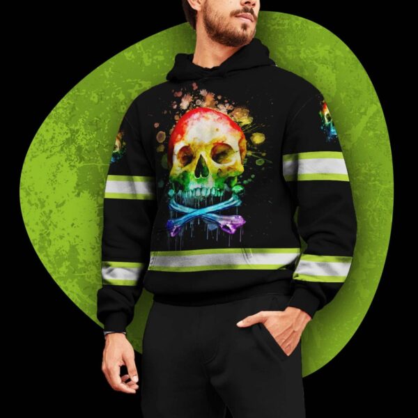 Hi Vis Hoodie Reflective Rainbow Neon Skull Watercolor Custom Name Safety Workwear For Workers, Runners, Cyclists, Patriotic quantity