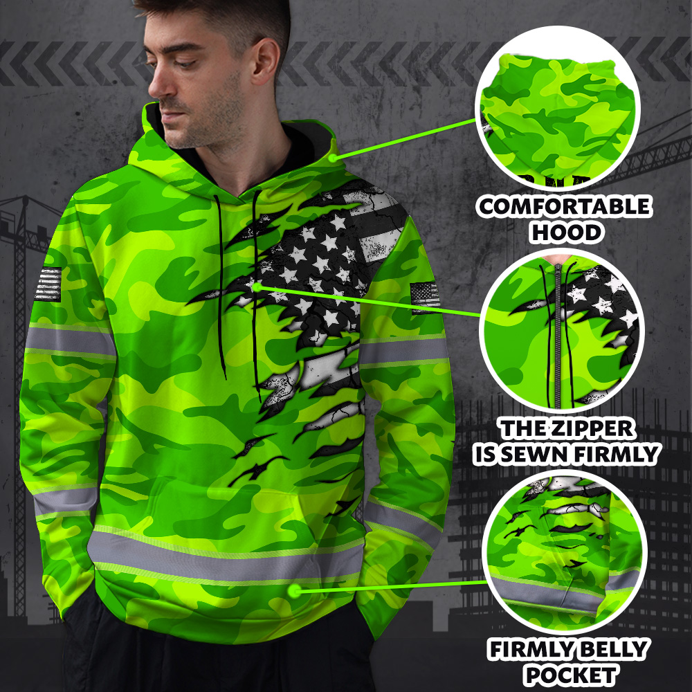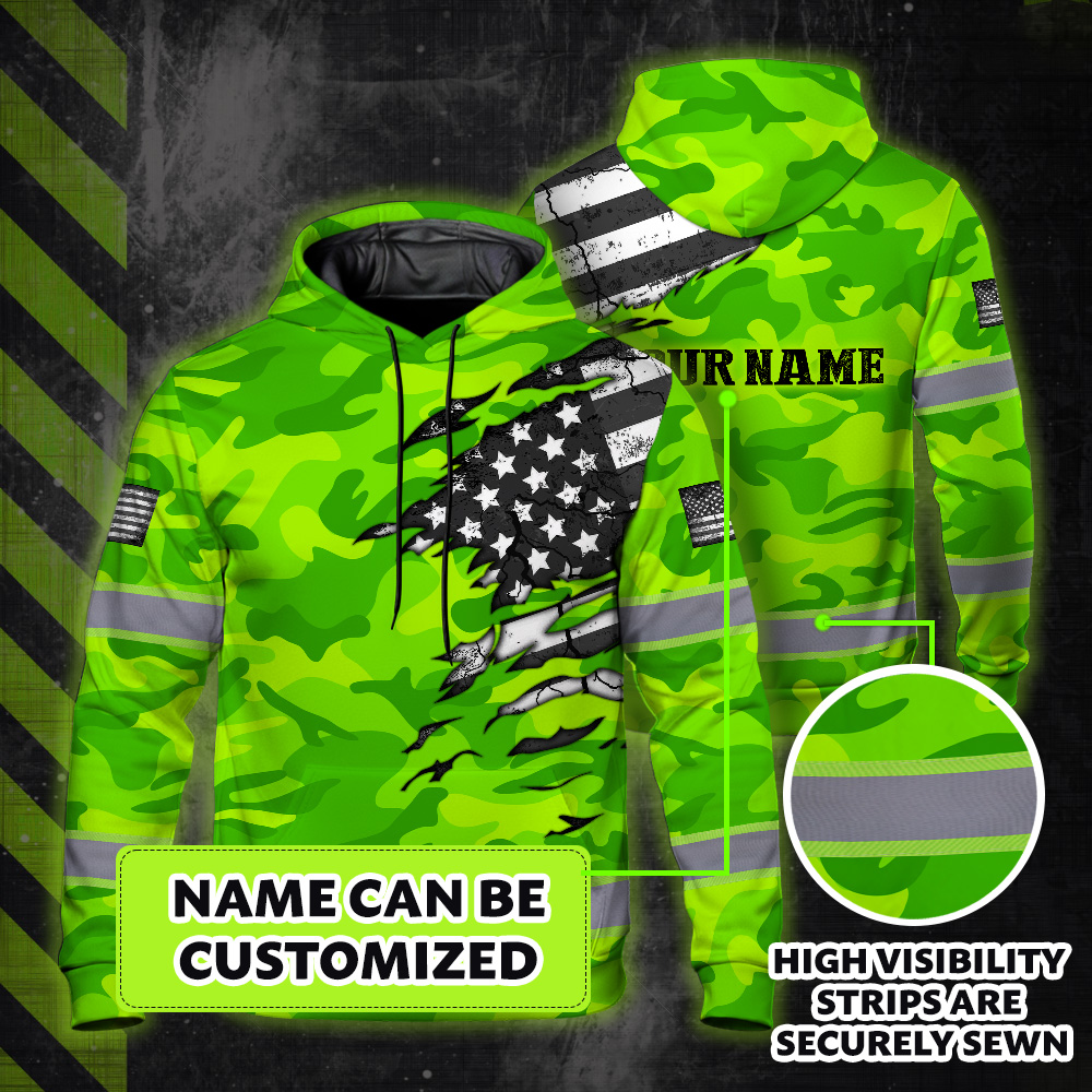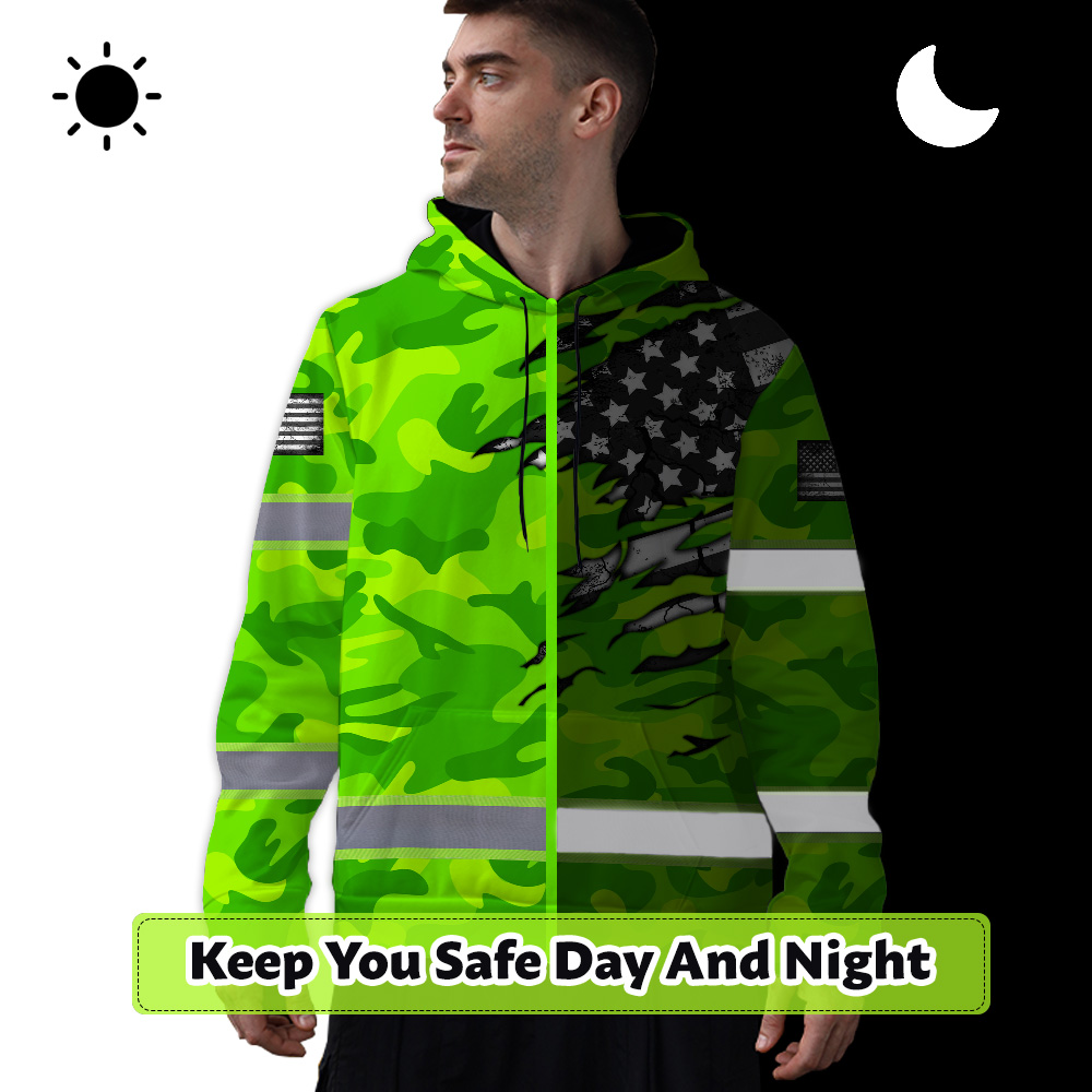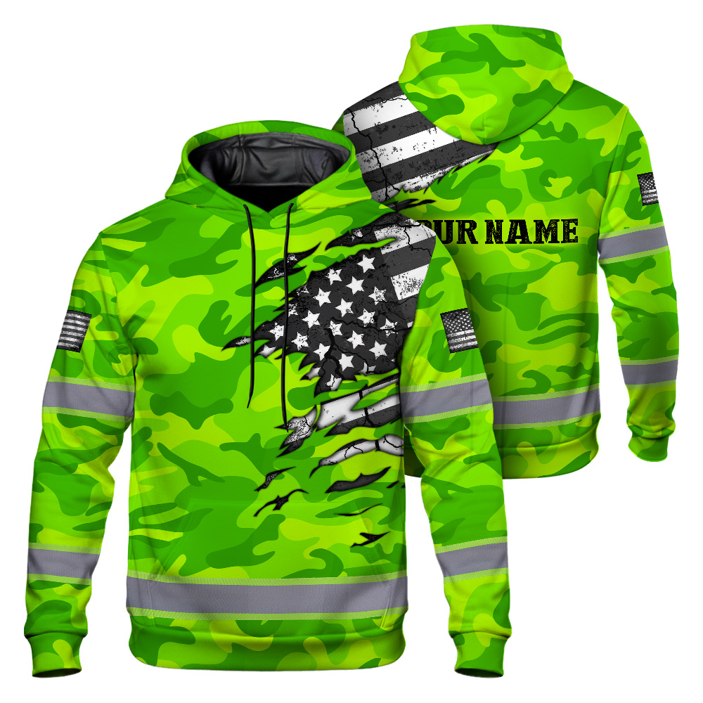 Hi Vis Hoodie Reflective Scratch Green Camo Neon US Flag Custom Name