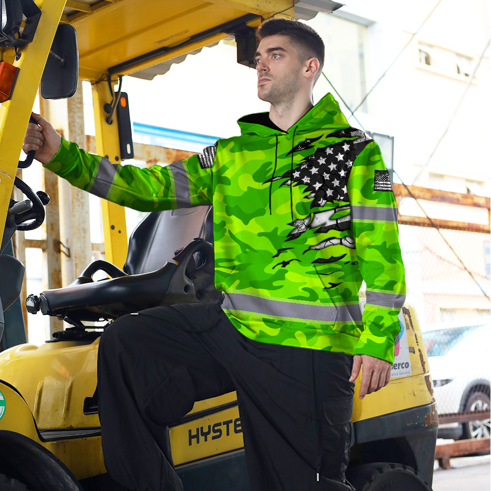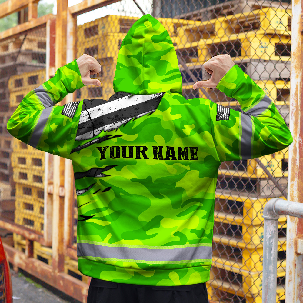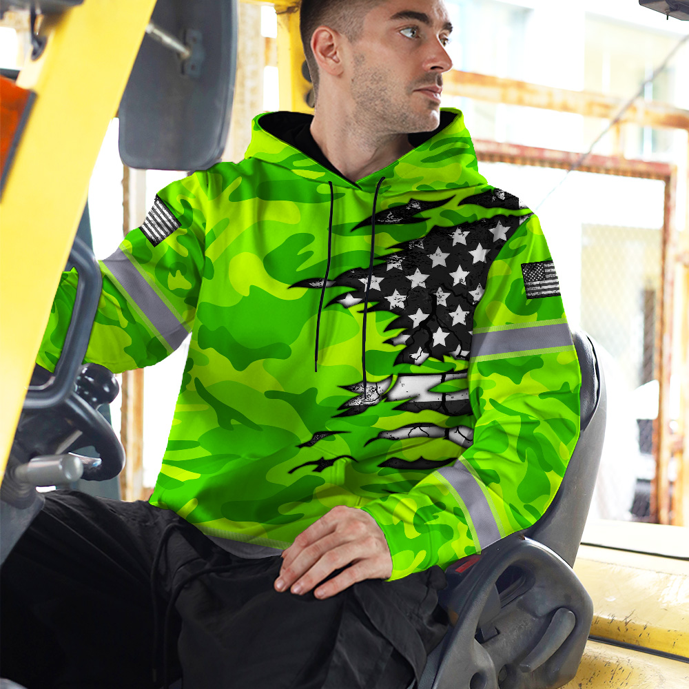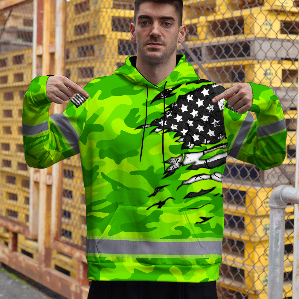 Hi Vis Hoodie Reflective Scratch Green Camo Neon US Flag Custom Name