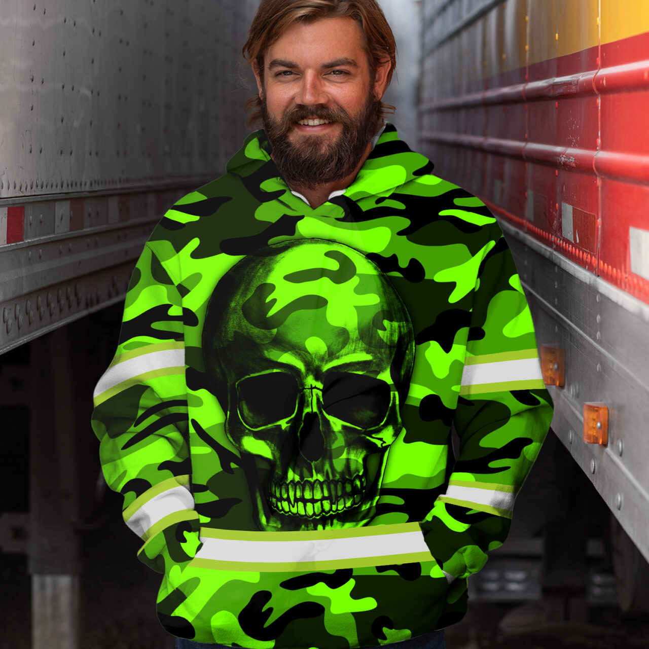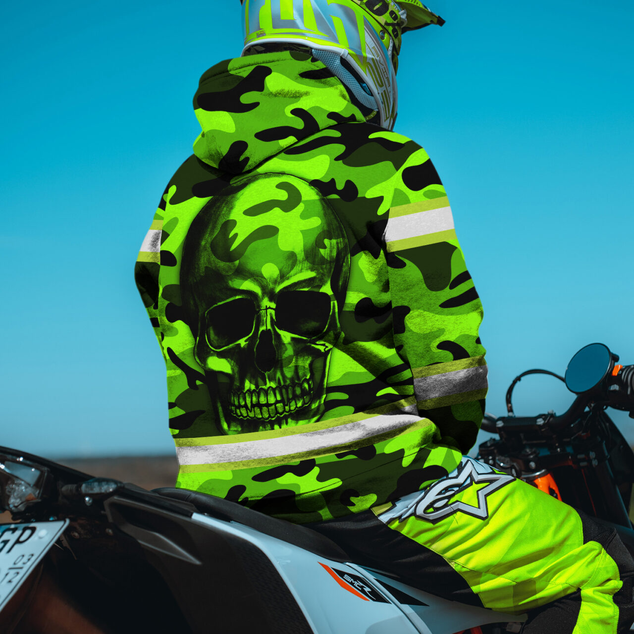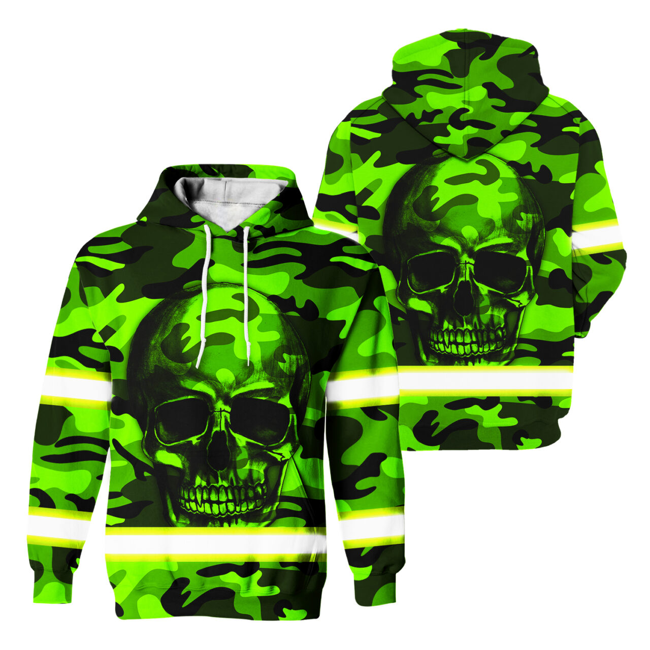 Hi Vis Hoodie Reflective Skull Camo Green Neon Safety Workwear
