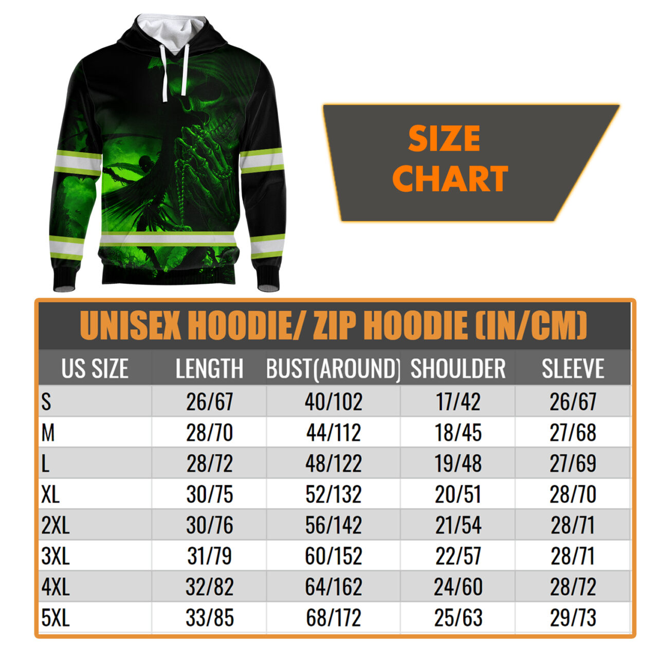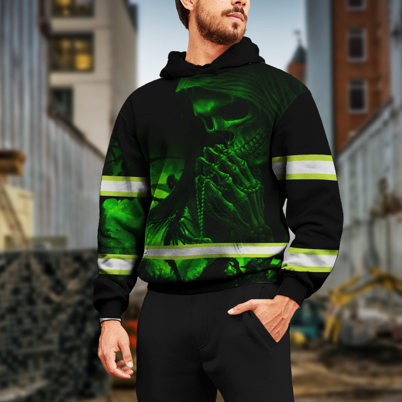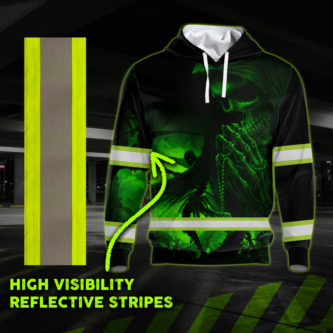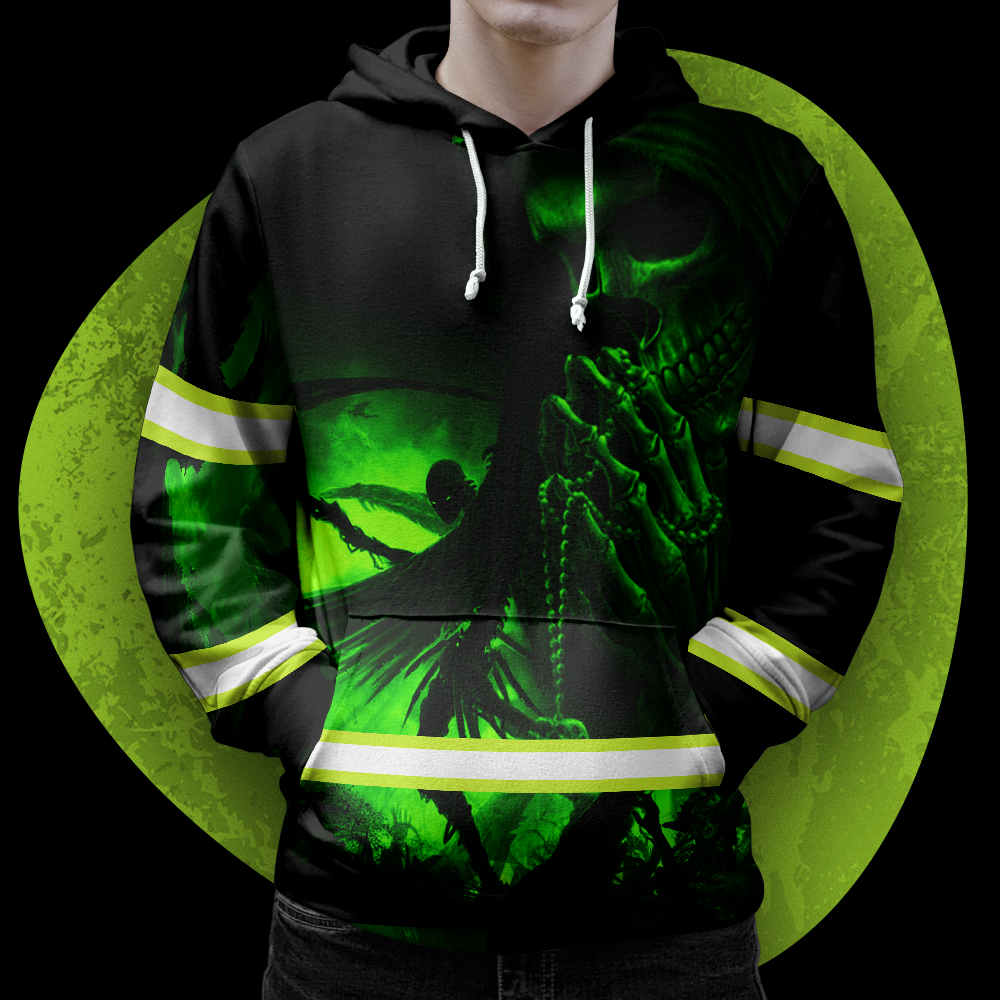Hi Vis Hoodie Reflective Skull Green Neon Custom Name Safety