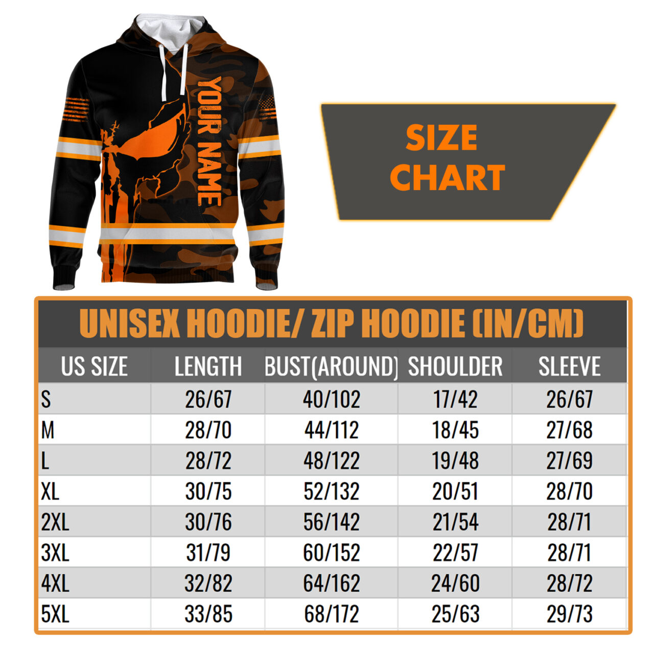 Hi Vis Hoodie Reflective Skull Orange Camo Neon US Flag Custom Name Safety Workwear