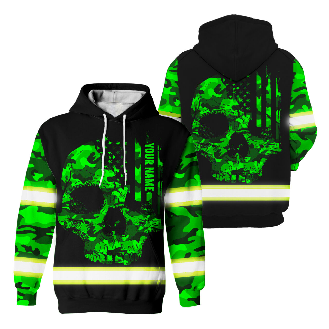 Hi Vis Hoodie Reflective Skull US Flag Camo Neon Custom Name Safety Workwear