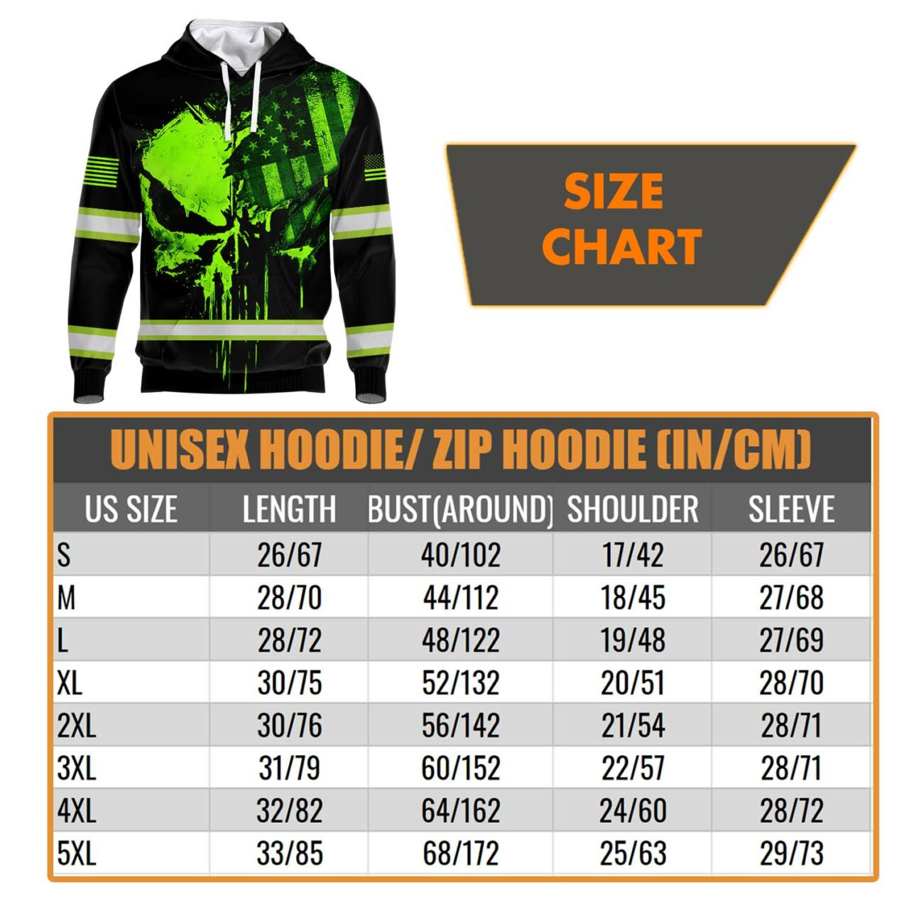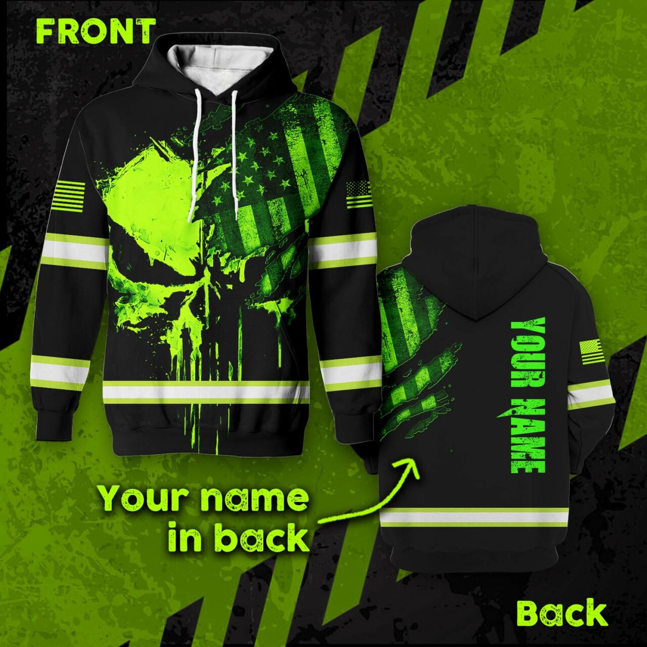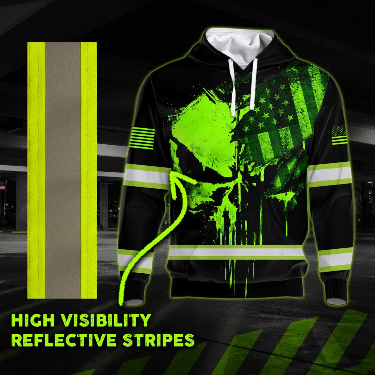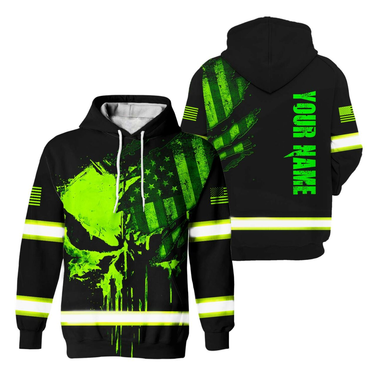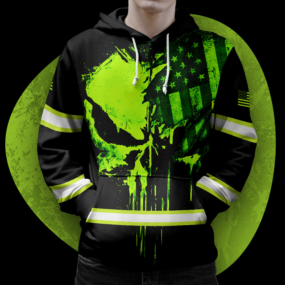 Hi Vis Hoodie Reflective Skull US Flag Custom Name Safety Workwear