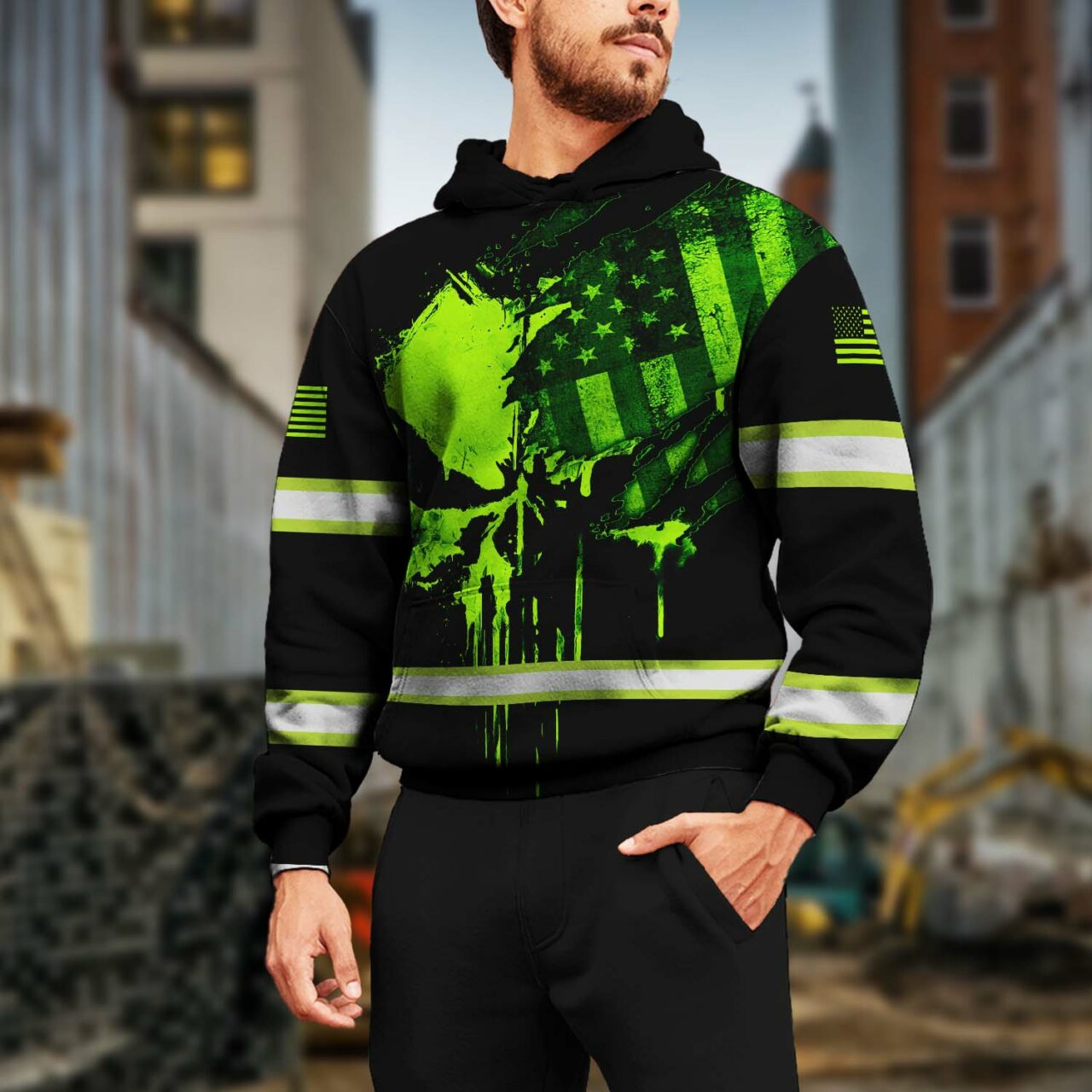 Select options This product has multiple variants. The options may be chosen on the product pageHi Vis Hoodie Reflective USA Flag Green Neon Safety Workwear