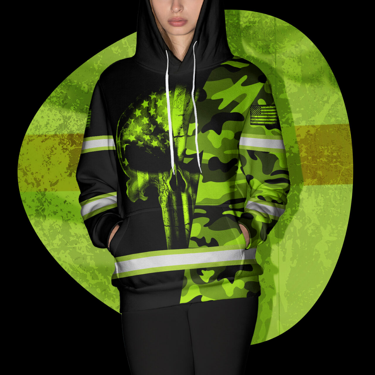 Hi Vis Hoodie Reflective Skull US Flag Custom Name Safety Workwear