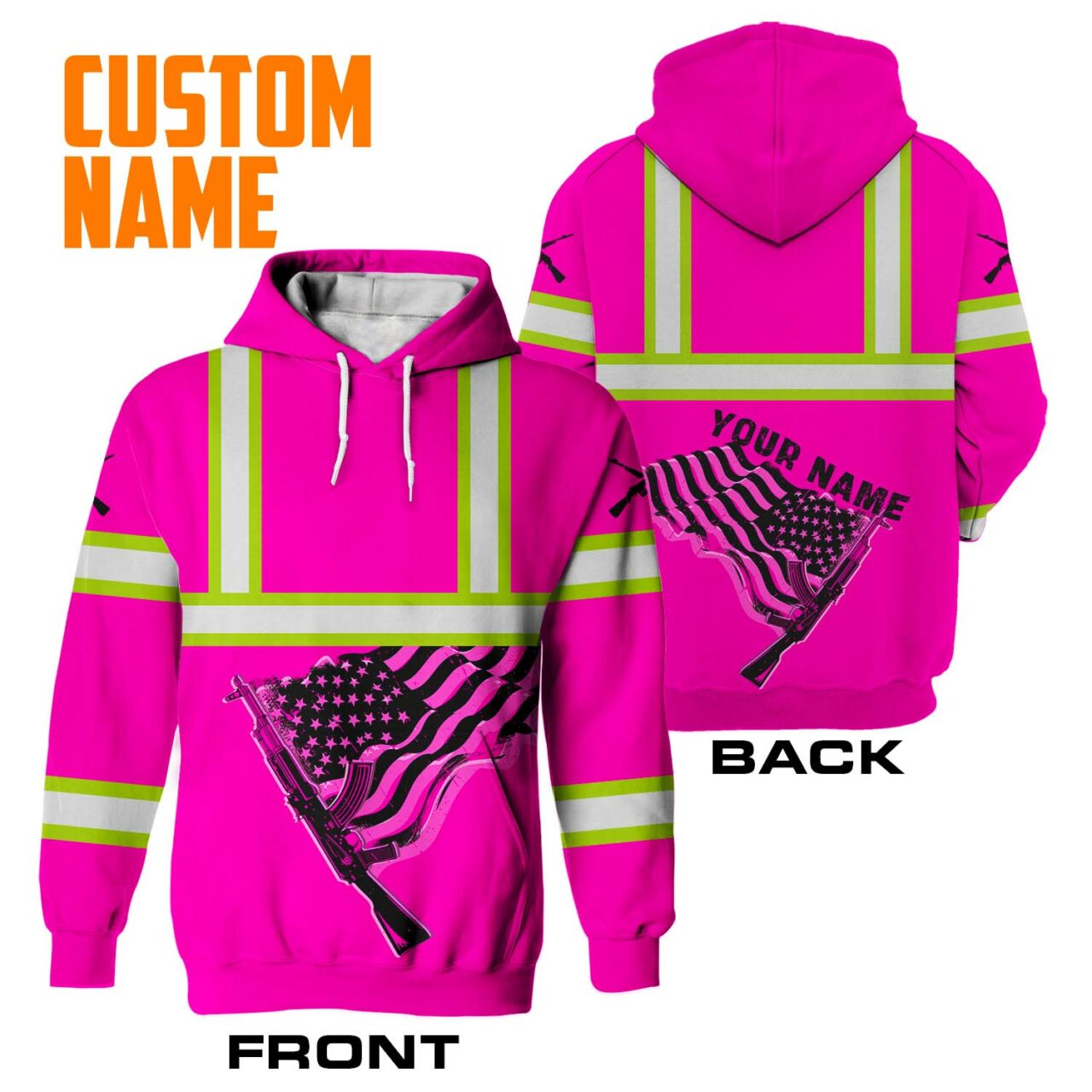Hi Vis Hoodie Reflective Tapes Black And Pink Neon Gun US Flag