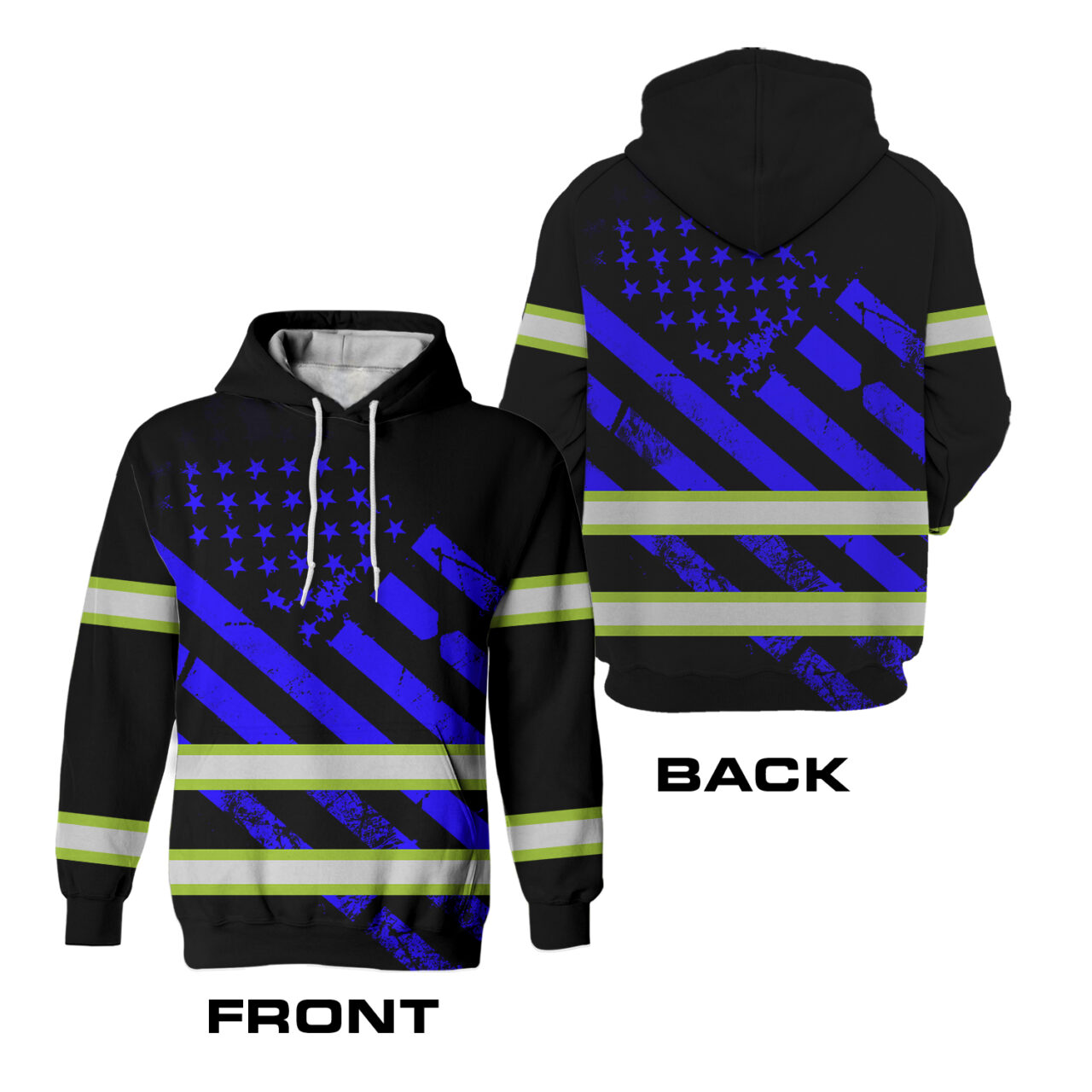 - Made with a breathable polyester fabric, the Hi Vis Hoodie Reflective Tapes Black Blue USA Flag Safety Workwear is perfect for those who work up a sweat while working or running