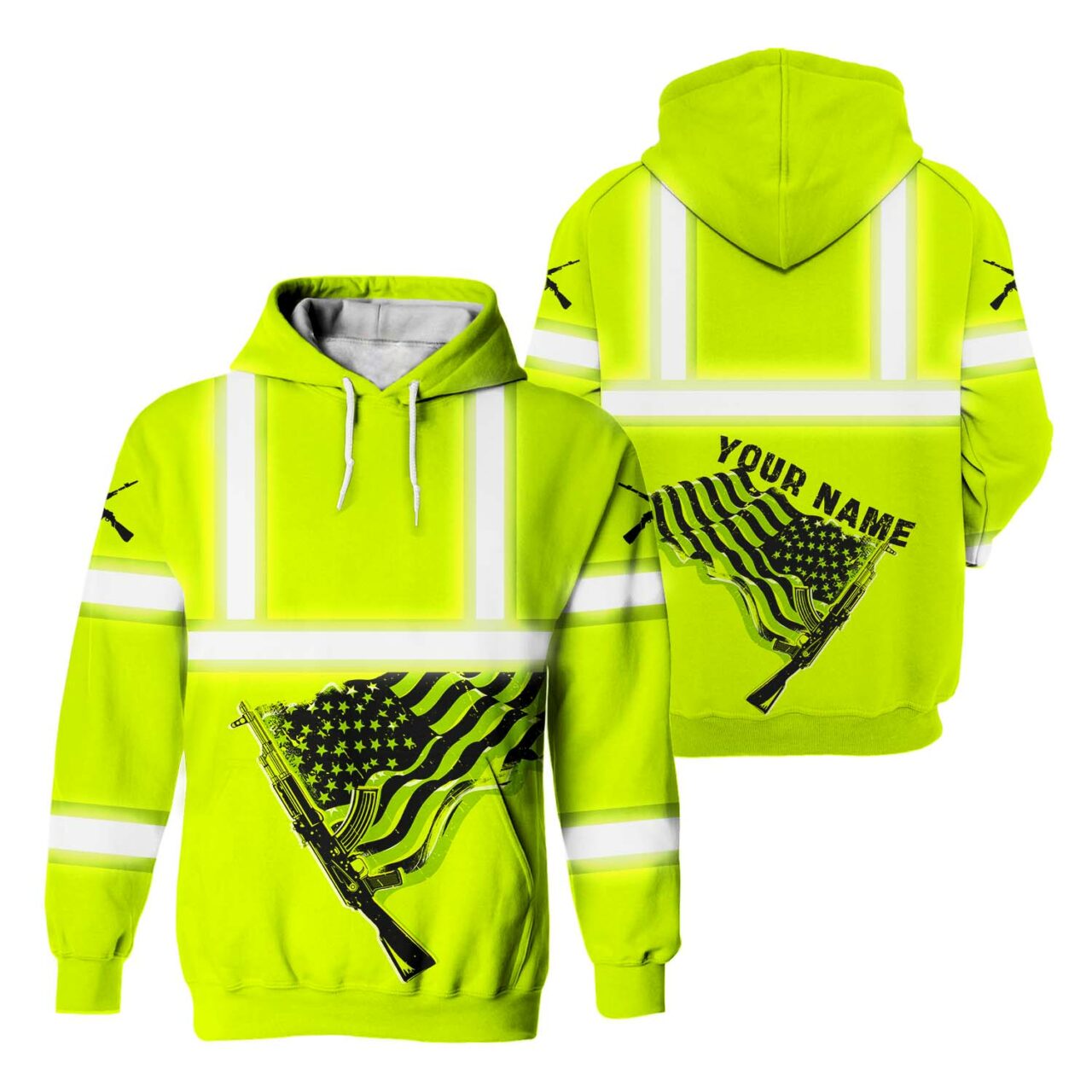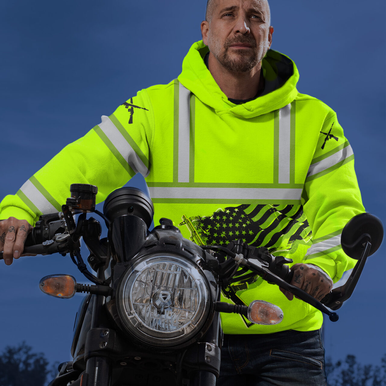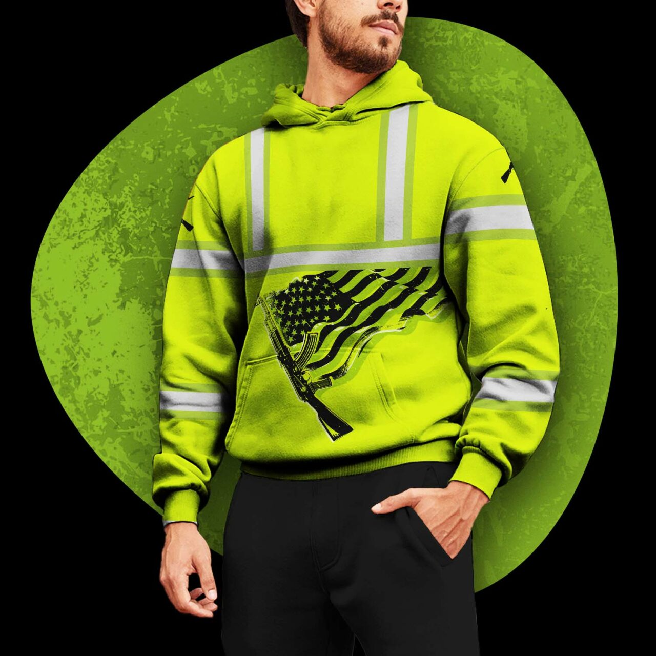 Hi Vis Hoodie Reflective Tapes Black Lime Neon Gun US Flag