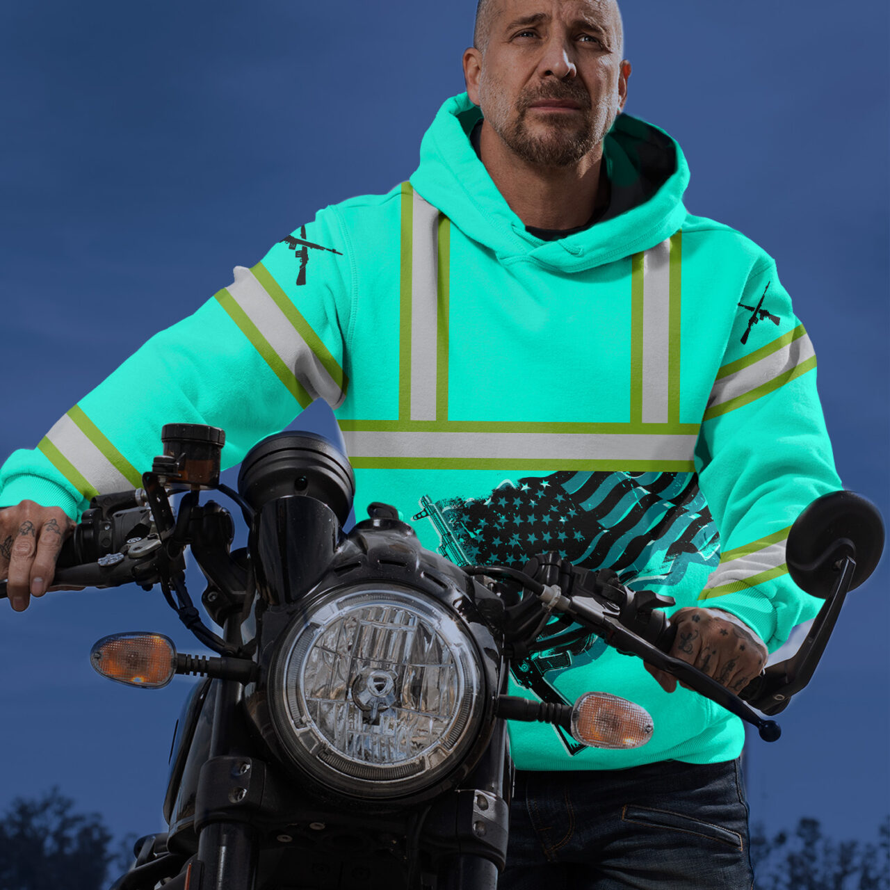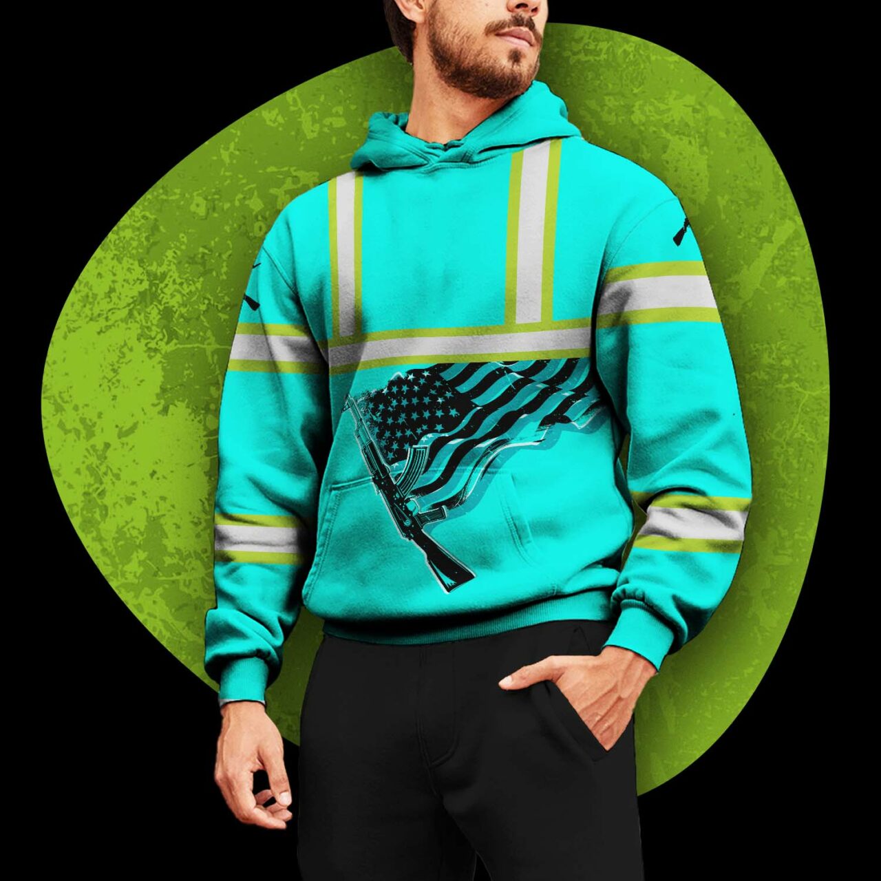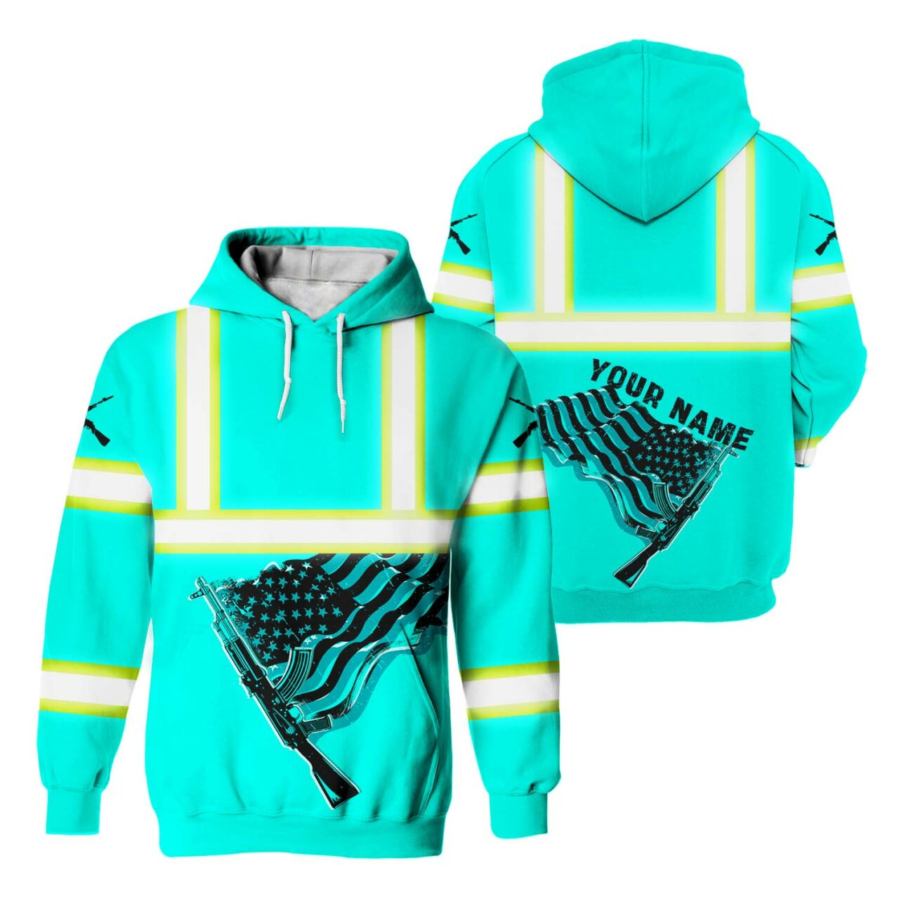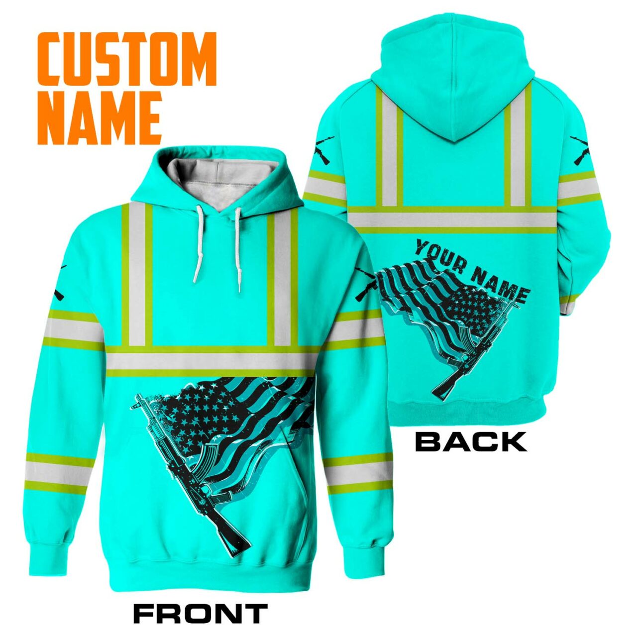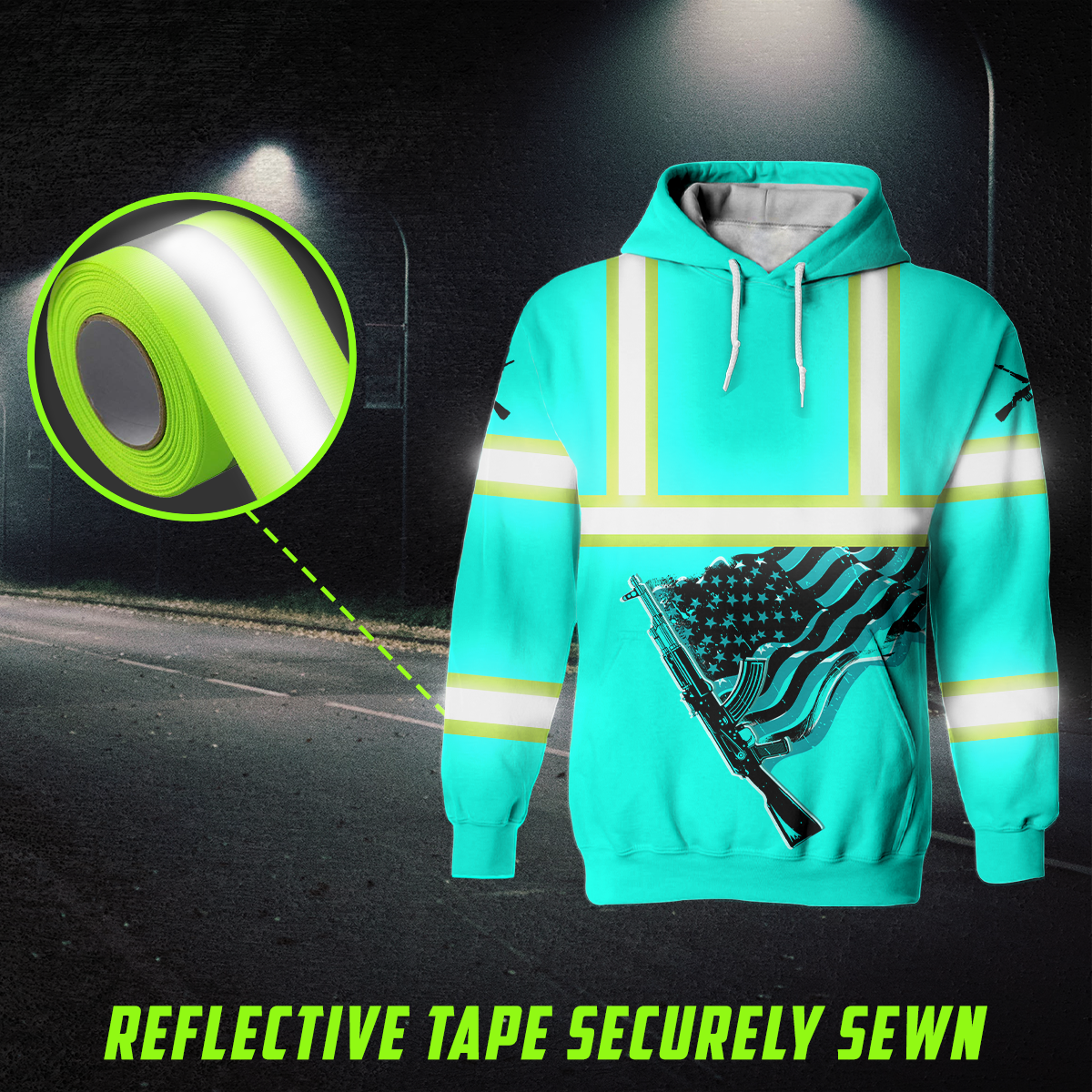 Hi Vis Hoodie Reflective Tapes Black Mint Neon Gun US Flag