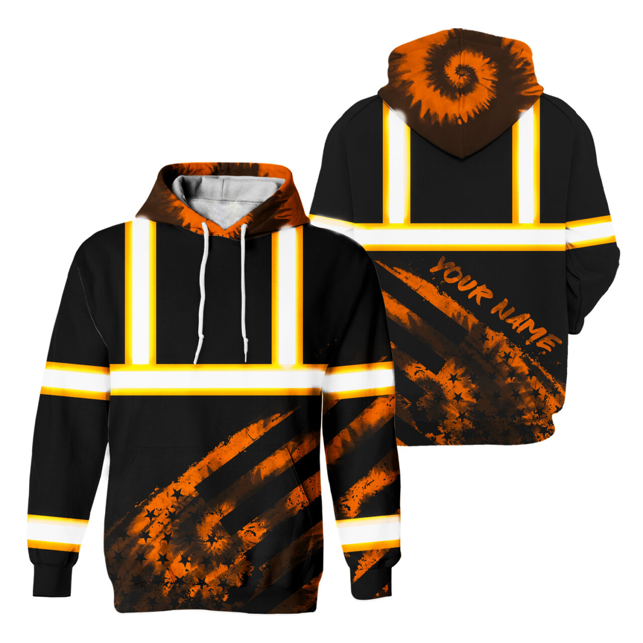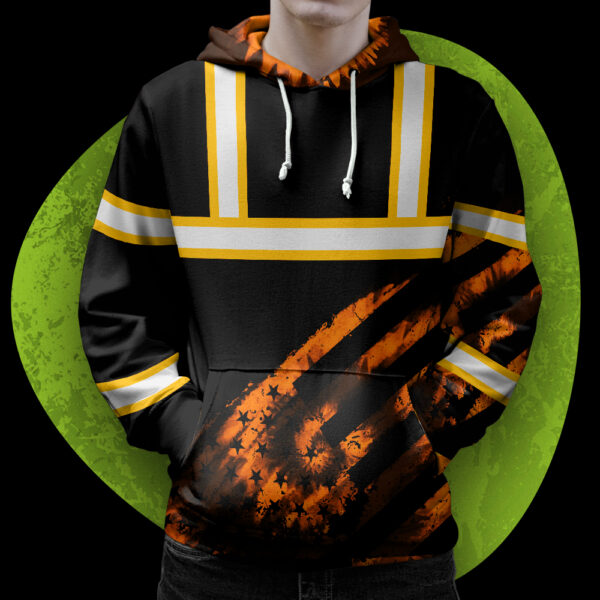 Hi Vis Hoodie Reflective Tapes Black Orange Flag Tie Dye Custom Name Safety