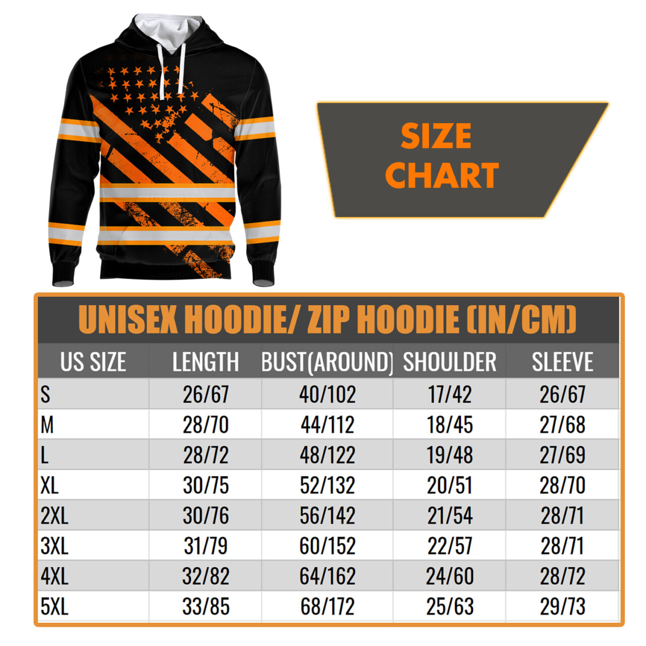 The Hi Vis Hoodie Reflective Tapes Black Orange USA Flag Safety Workwear For Workers, Runners, Cyclists, Patriotic Description is a bright and eye-catching piece of clothing that is perfect for those who want to be seen while working or exercising outdoors. The reflective tapes on the hoodie help to increase visibility in low-light conditions, and the bold colors are sure to turn heads. The hoodie is also made from breathable fabric, making it comfortable to wear even during strenuous activity. Plus, the built-in USB port means that you can stay connected even while on the go. Whether you’re a runner, cyclist, or just looking for a way to show your patriotism, the Hi Vis Hoodie Reflective Tapes Black Orange USA Flag Safety Workwear For Workers, Runners, Cyclists, Patriotic Description is a great choice.