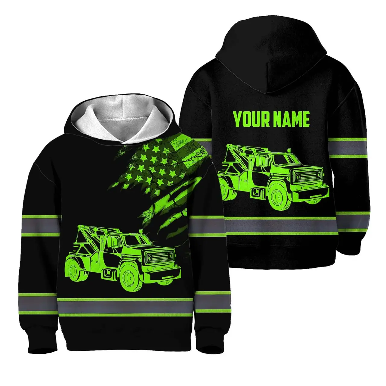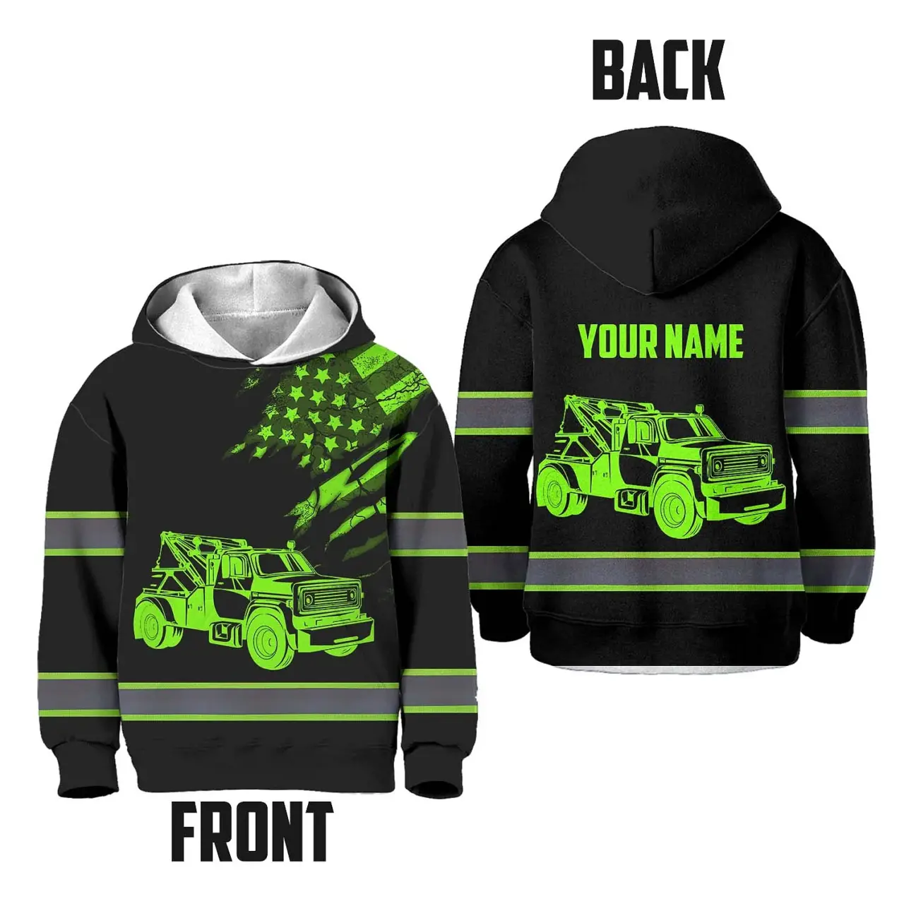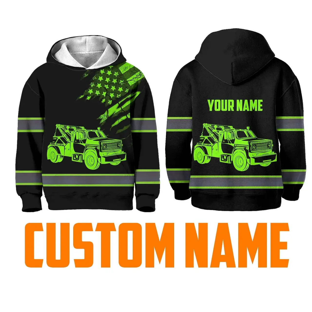 Hi Vis Hoodie Reflective Tapes Black Tow Truck Driver Custom Name For Kids