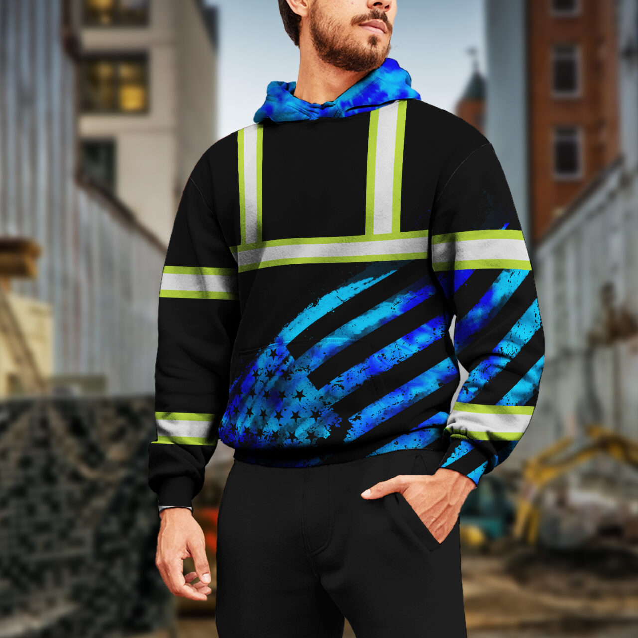 Hi Vis Hoodie Reflective Tie Dye US Flag Paint Safety Workwear