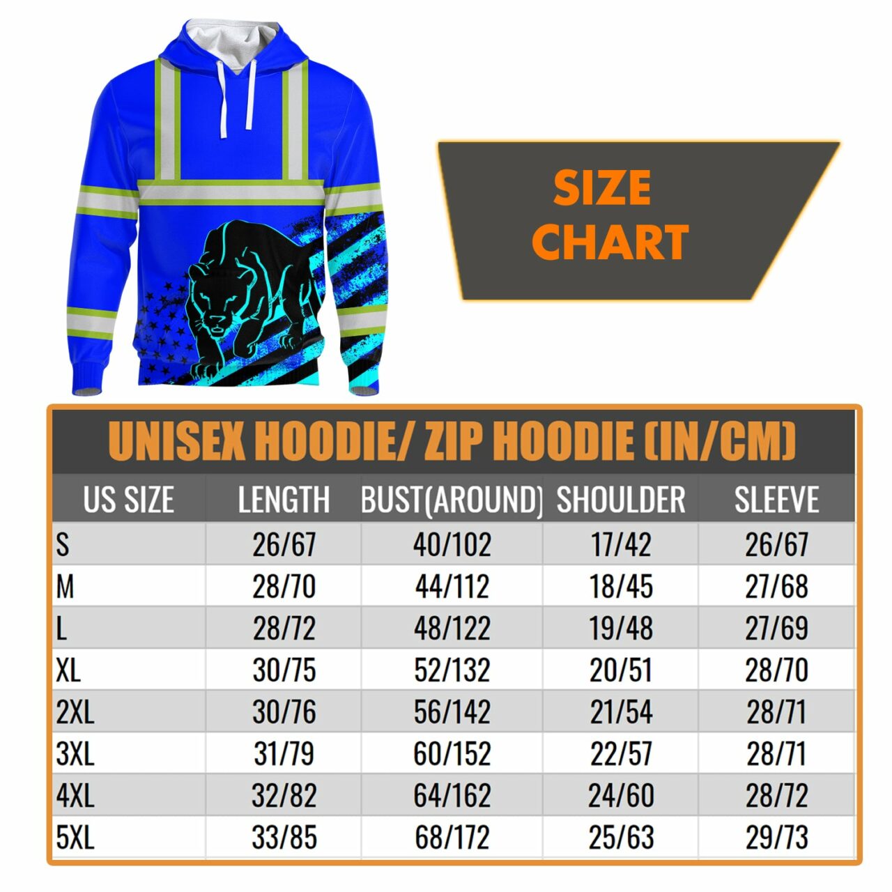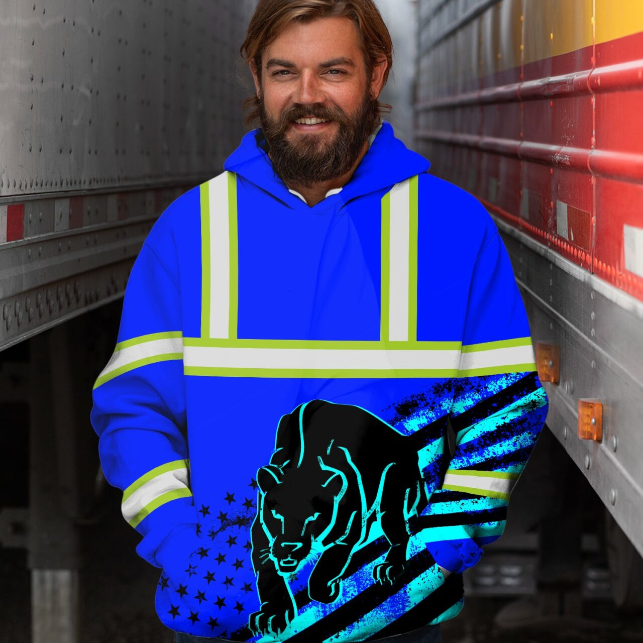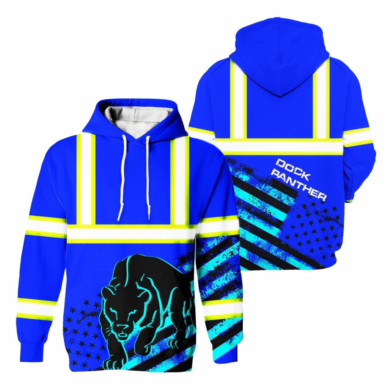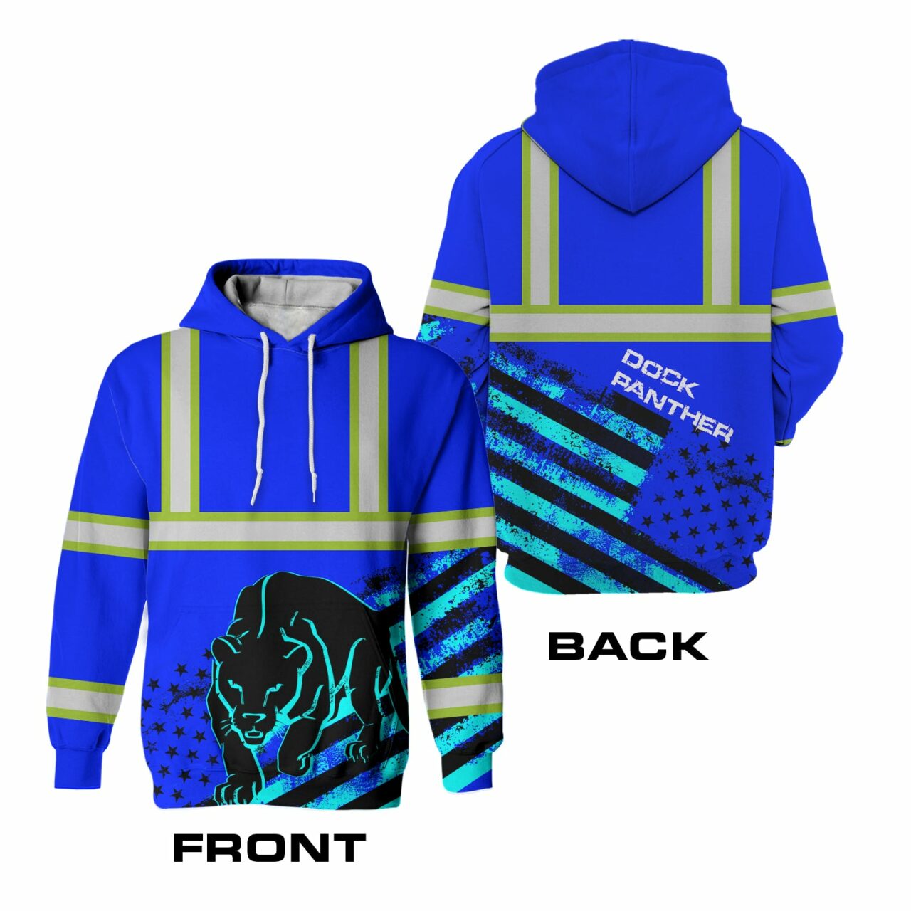 Do you know the greatest technique for staying safe while working or running at night? It has a hi-vis hoodie on! Even on the darkest of nights, you will be visible in these blue safety work clothes with a leopard print and US Flag. Additionally, the reflective strips contribute to your safety and security. Get one right away and make sure to keep yourself safe outside!