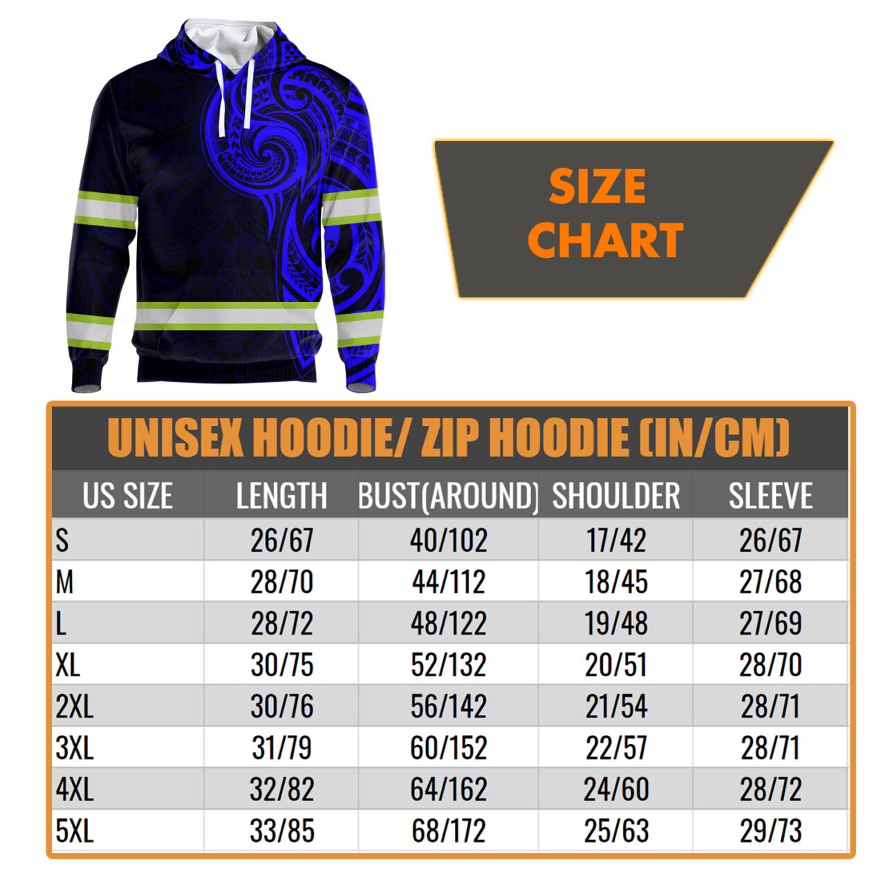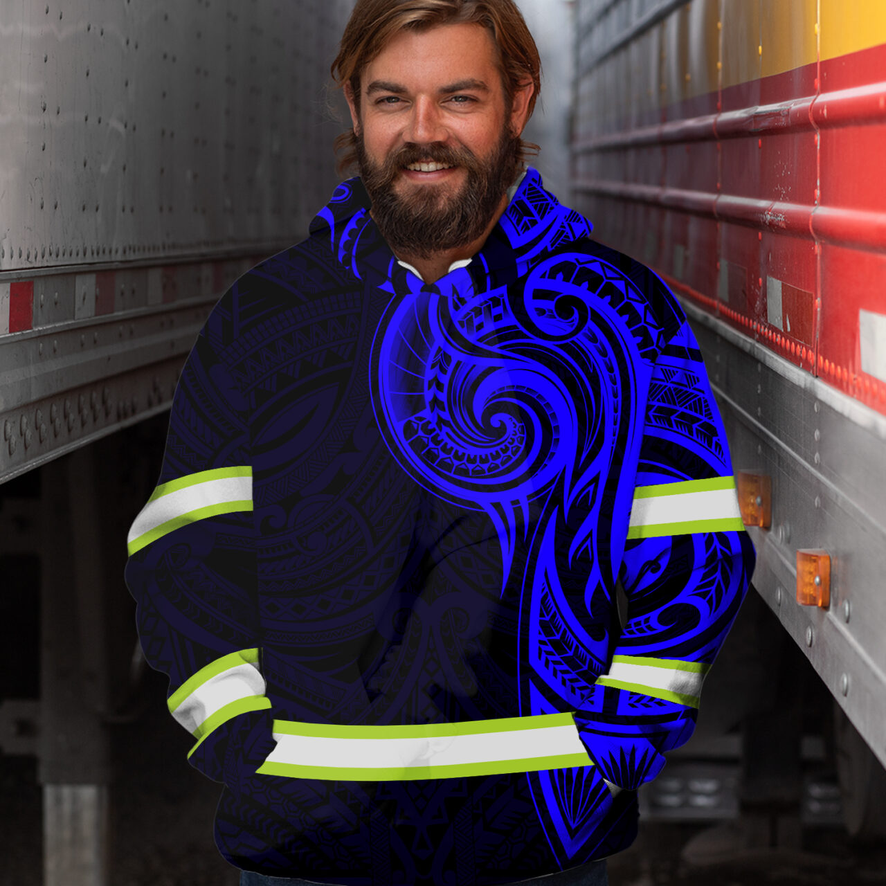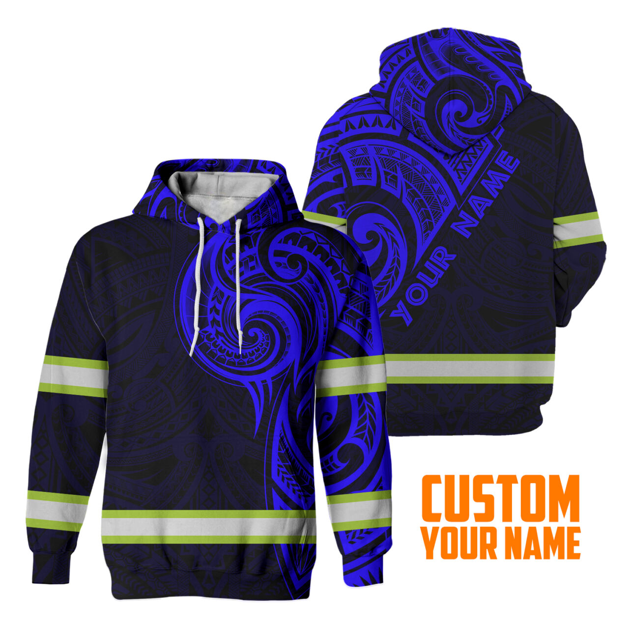Hi Vis Hoodie Reflective Tapes Blue Neon Hawaiian Polynesian Tribal Custom Name Safety Workwear