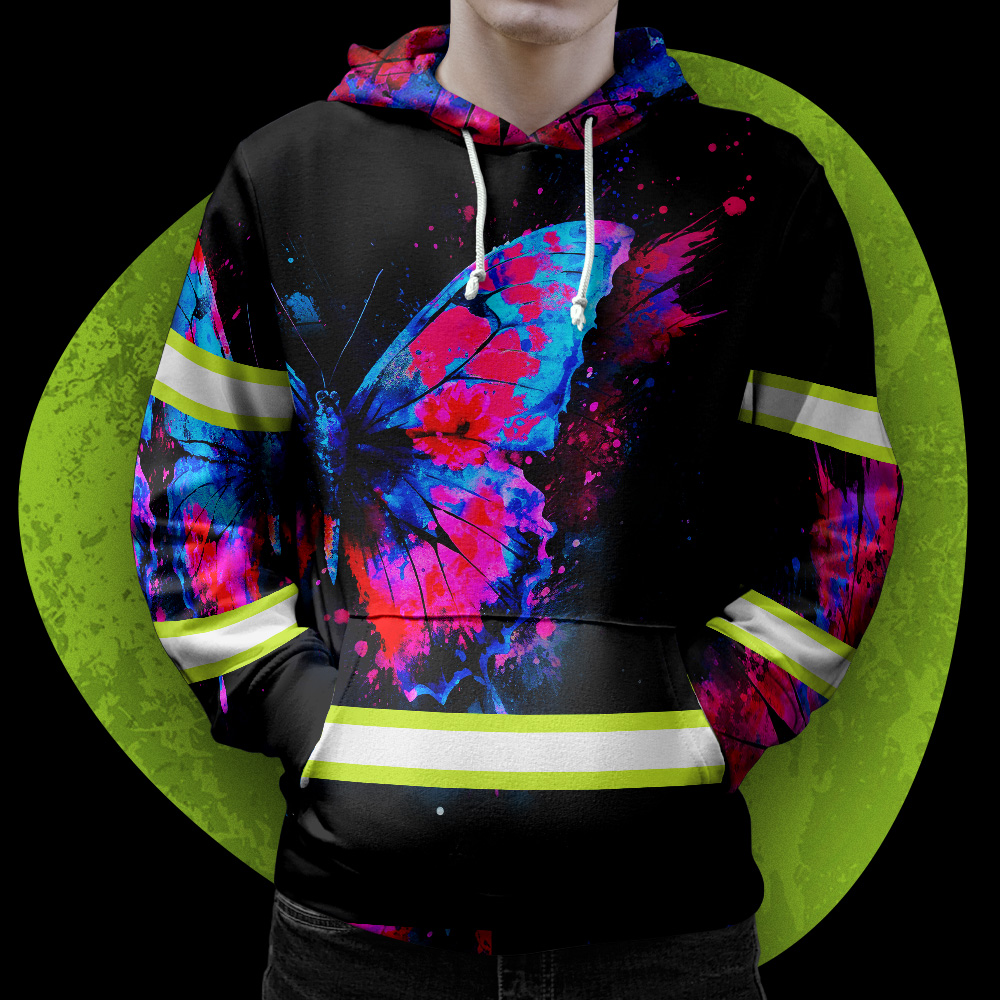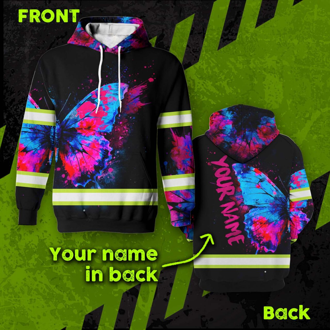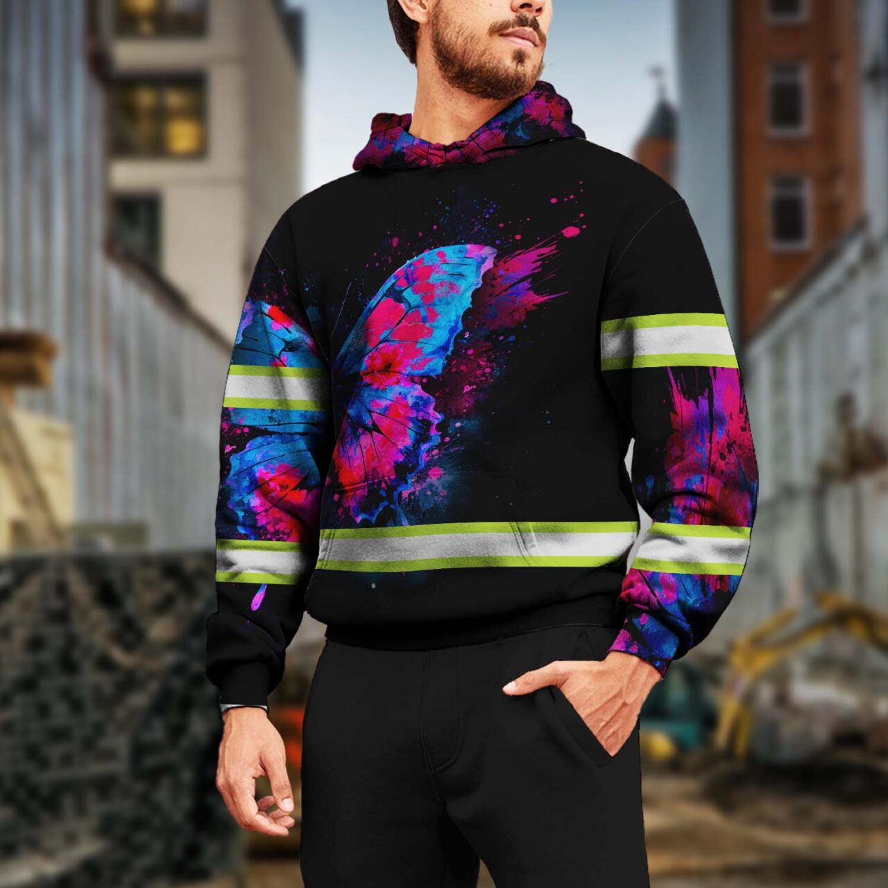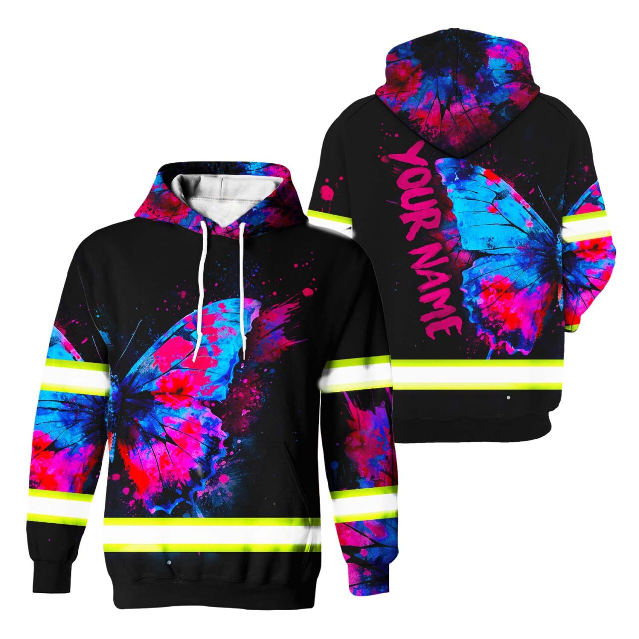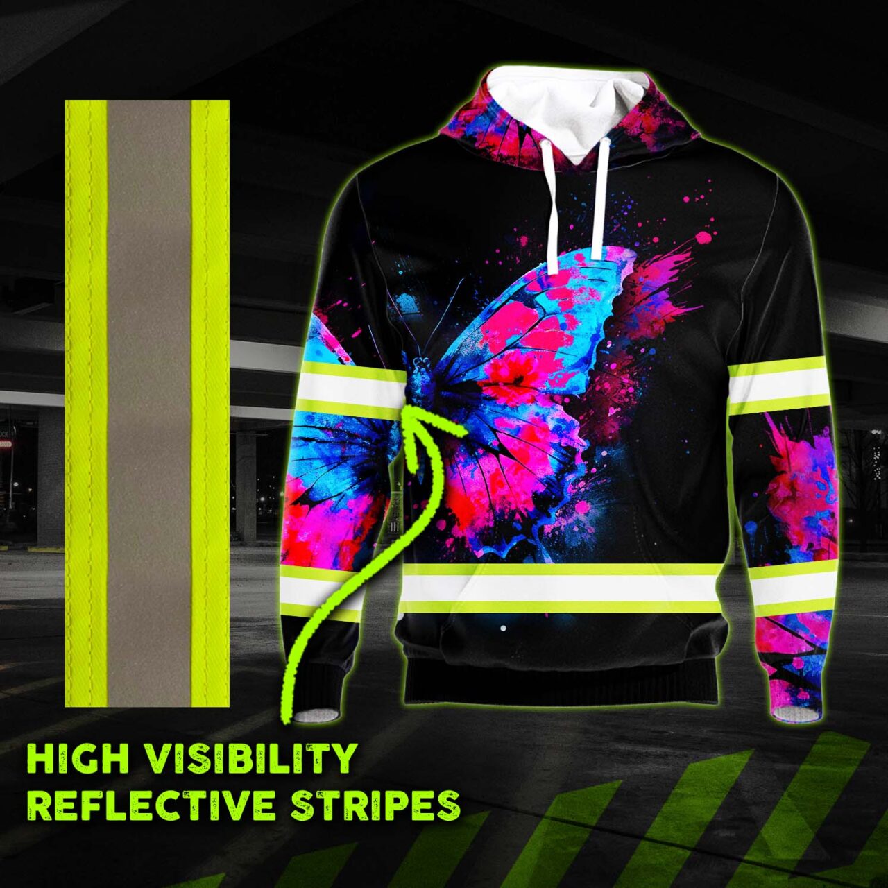 Hi Vis Hoodie Reflective Tapes Butterfly Pink Blue Neon Safety Workwear For Workers, Runners, Cyclists, Patriotic