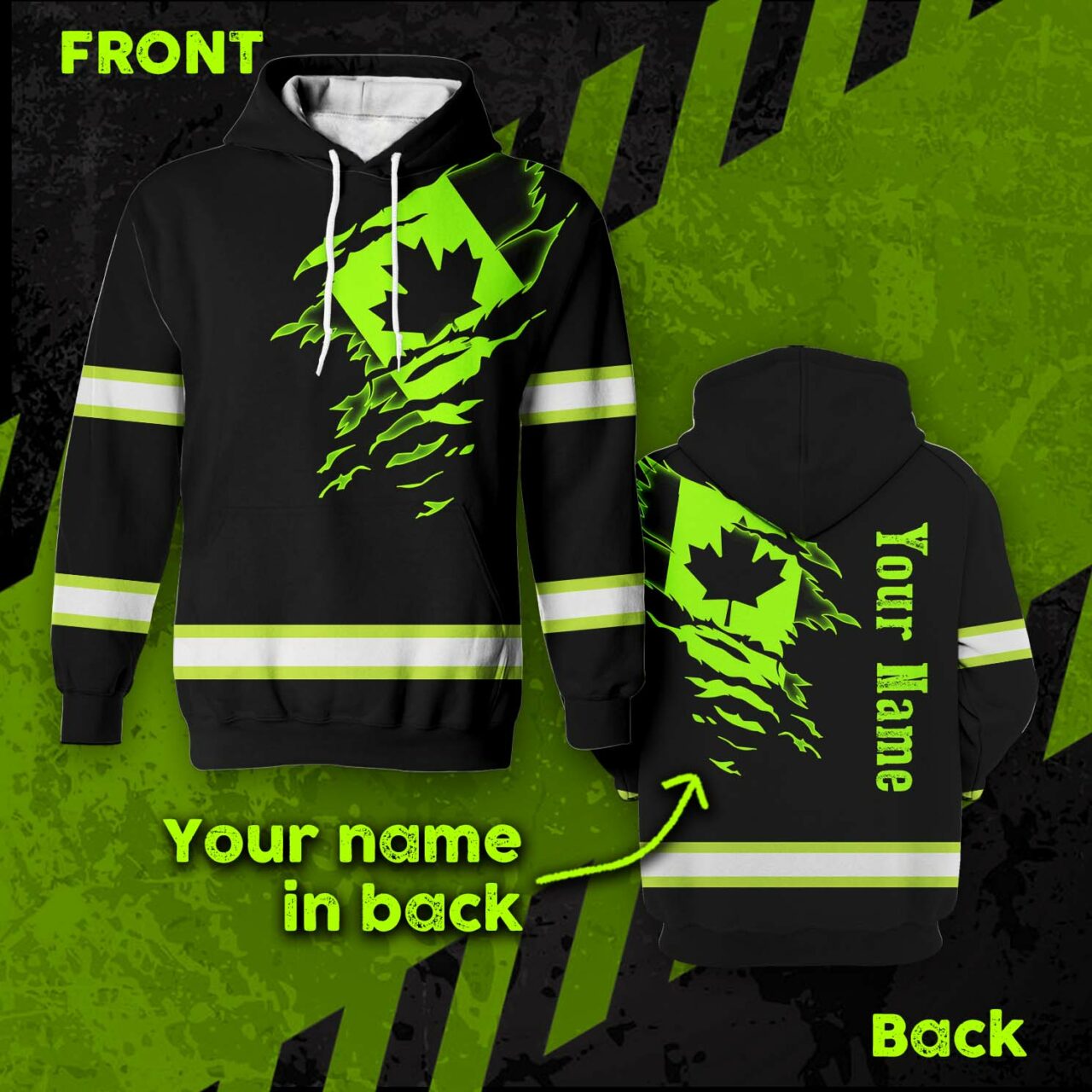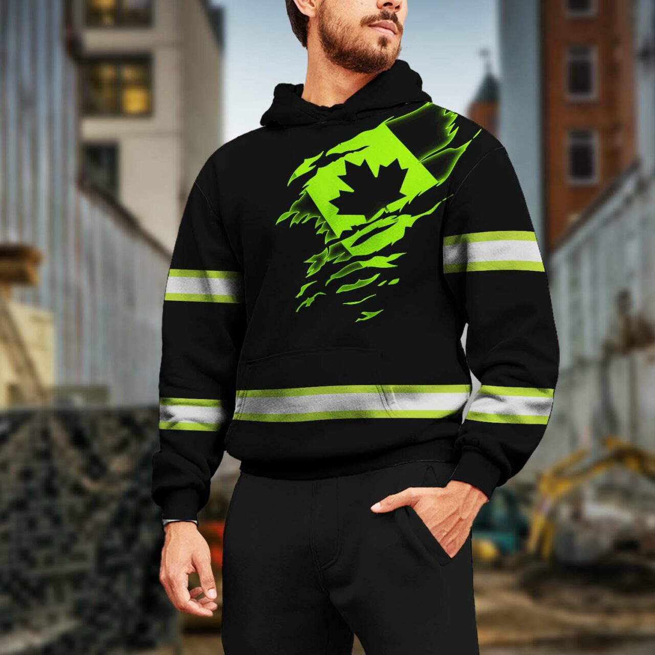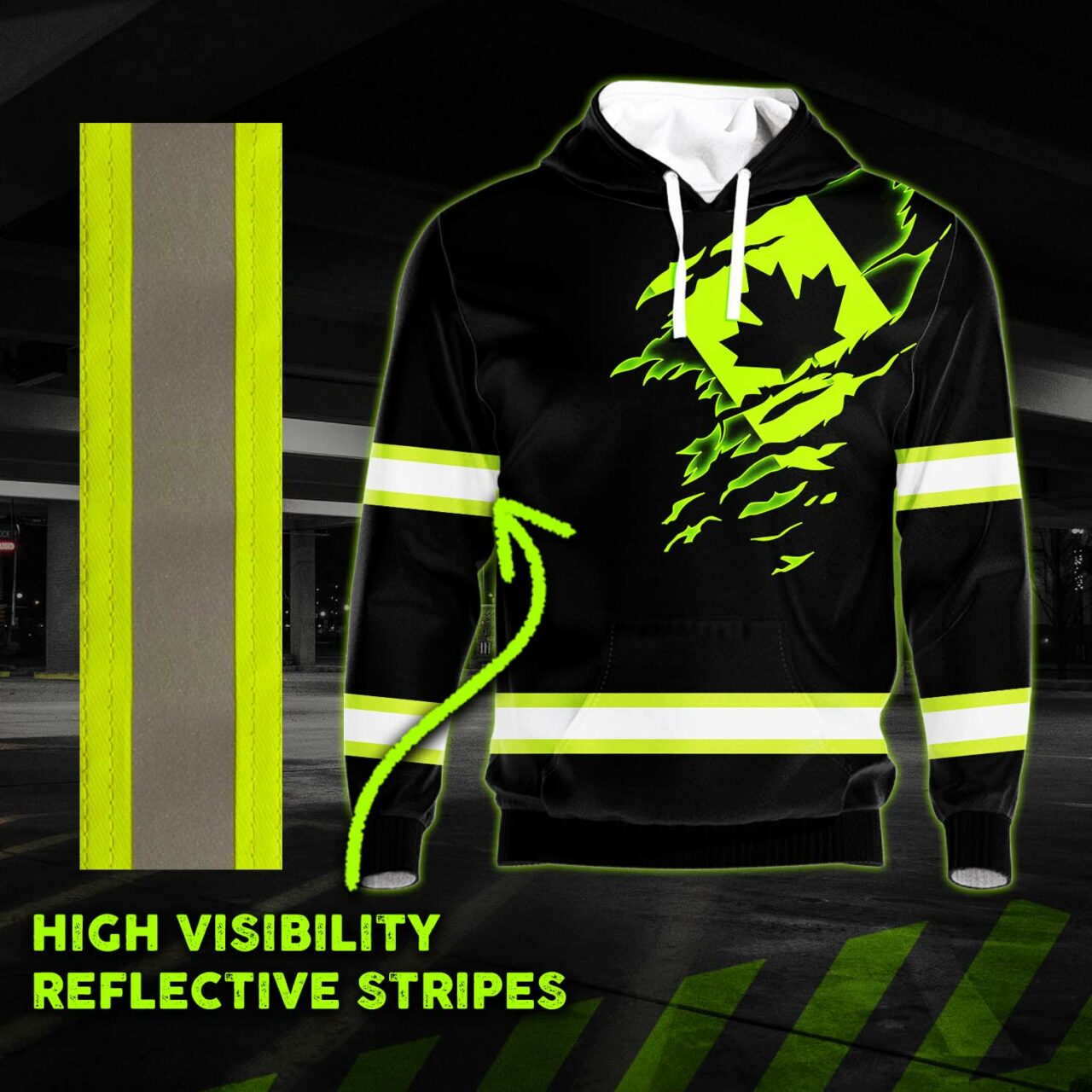 Hi Vis Hoodie Reflective Tapes Canada Flag Green And Black Color