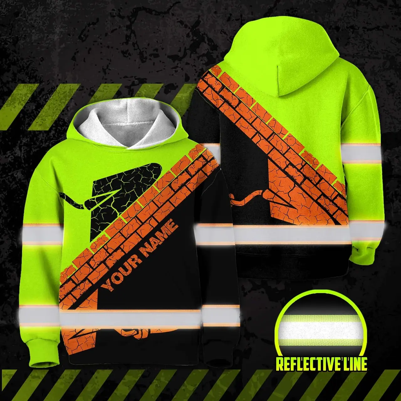 Hi Vis Hoodie Reflective Tapes Green Bricklayer Custom Name For Kids