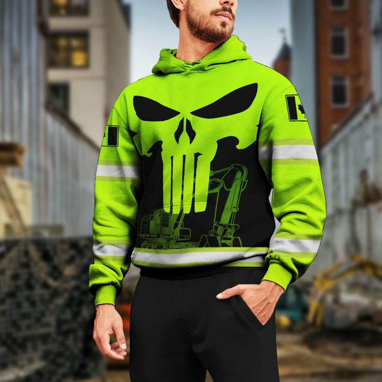 Hi Vis Hoodie Reflective Tapes Green Excavator Operator Canada Flag