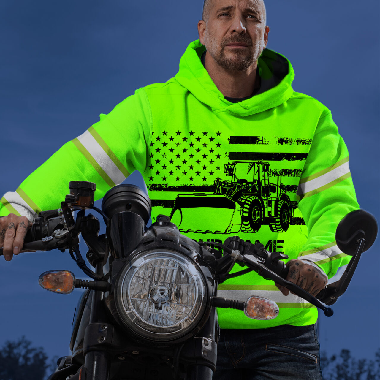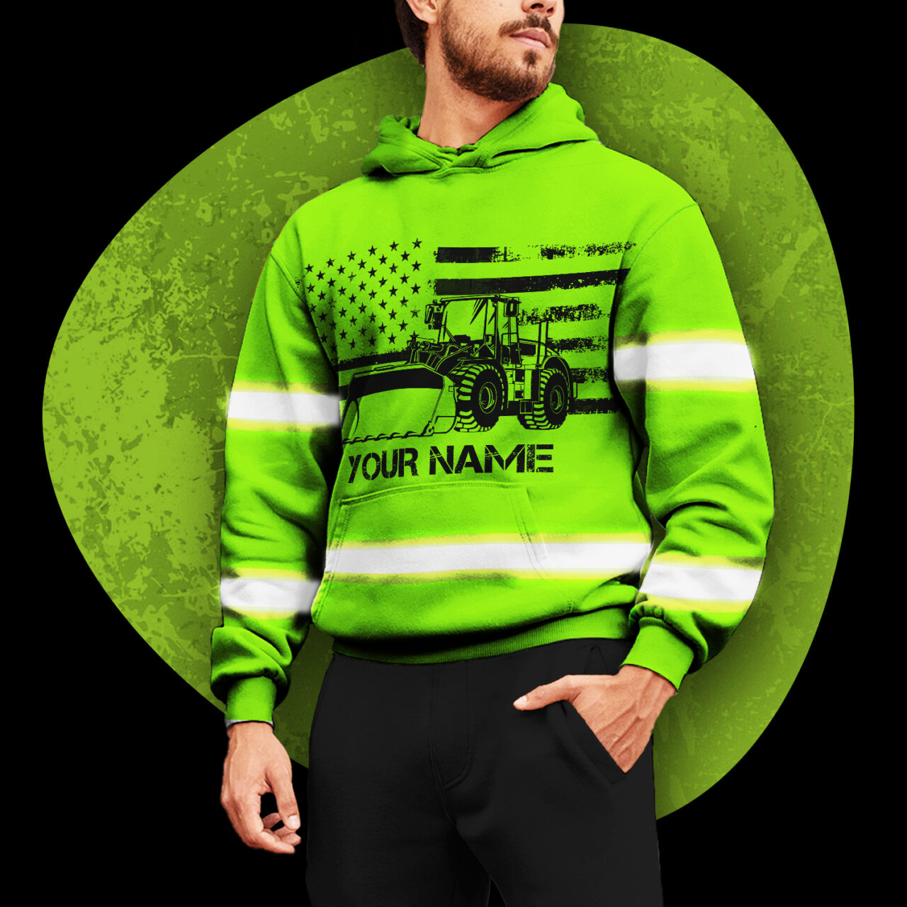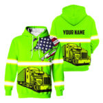 Hi Vis Hoodie Reflective Tapes Green Gradient Semi Truck Driver Custom