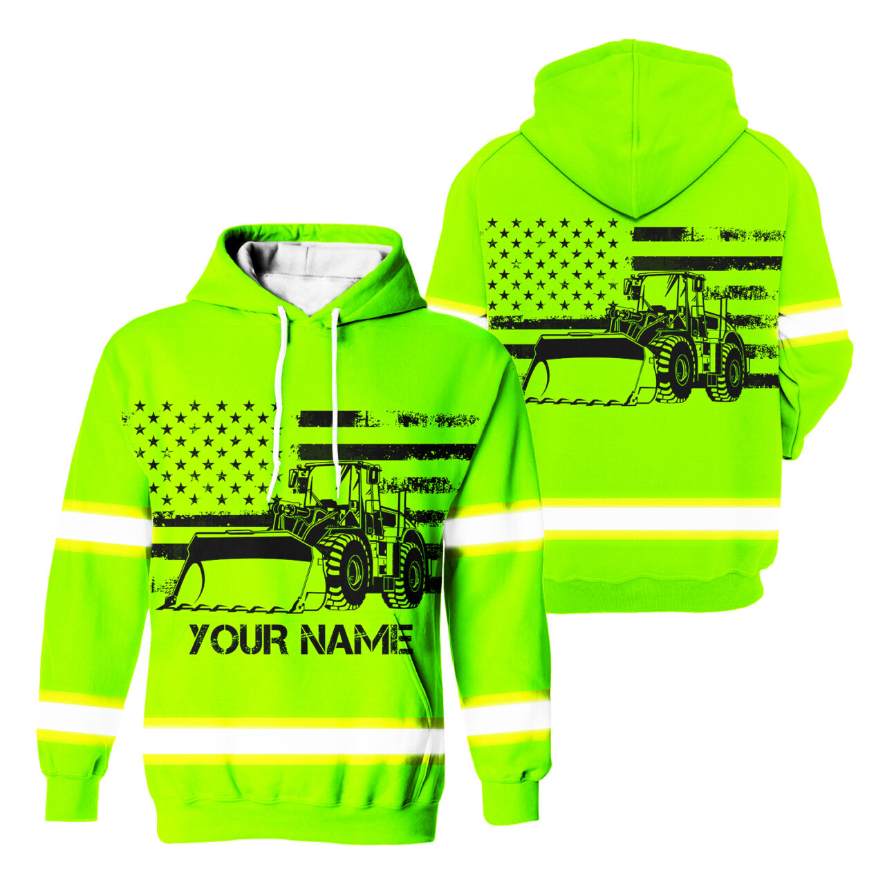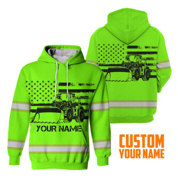 Hi Vis Hoodie Reflective Tapes Green Loader Operator Custom Name