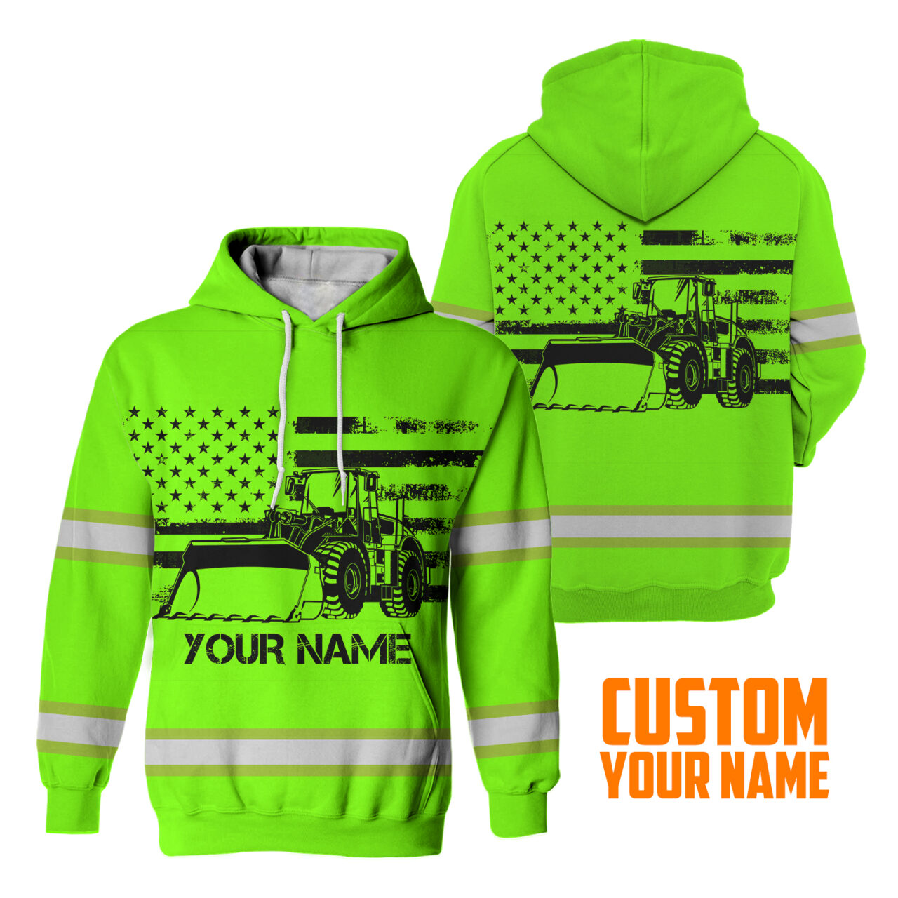 Hi Vis Hoodie Reflective Tapes Green Loader Operator Custom Name quantity
