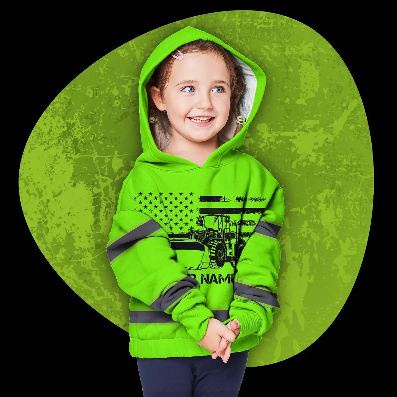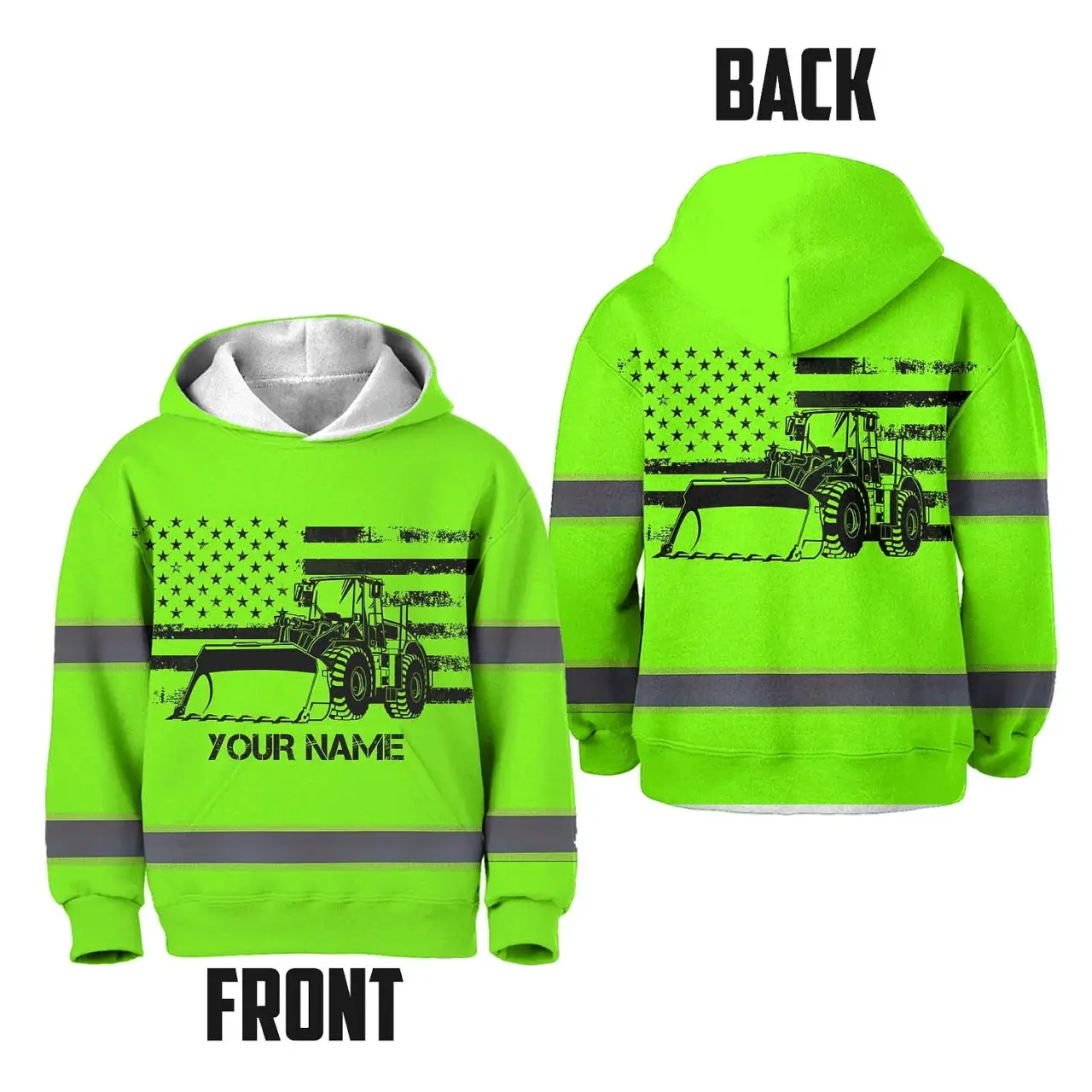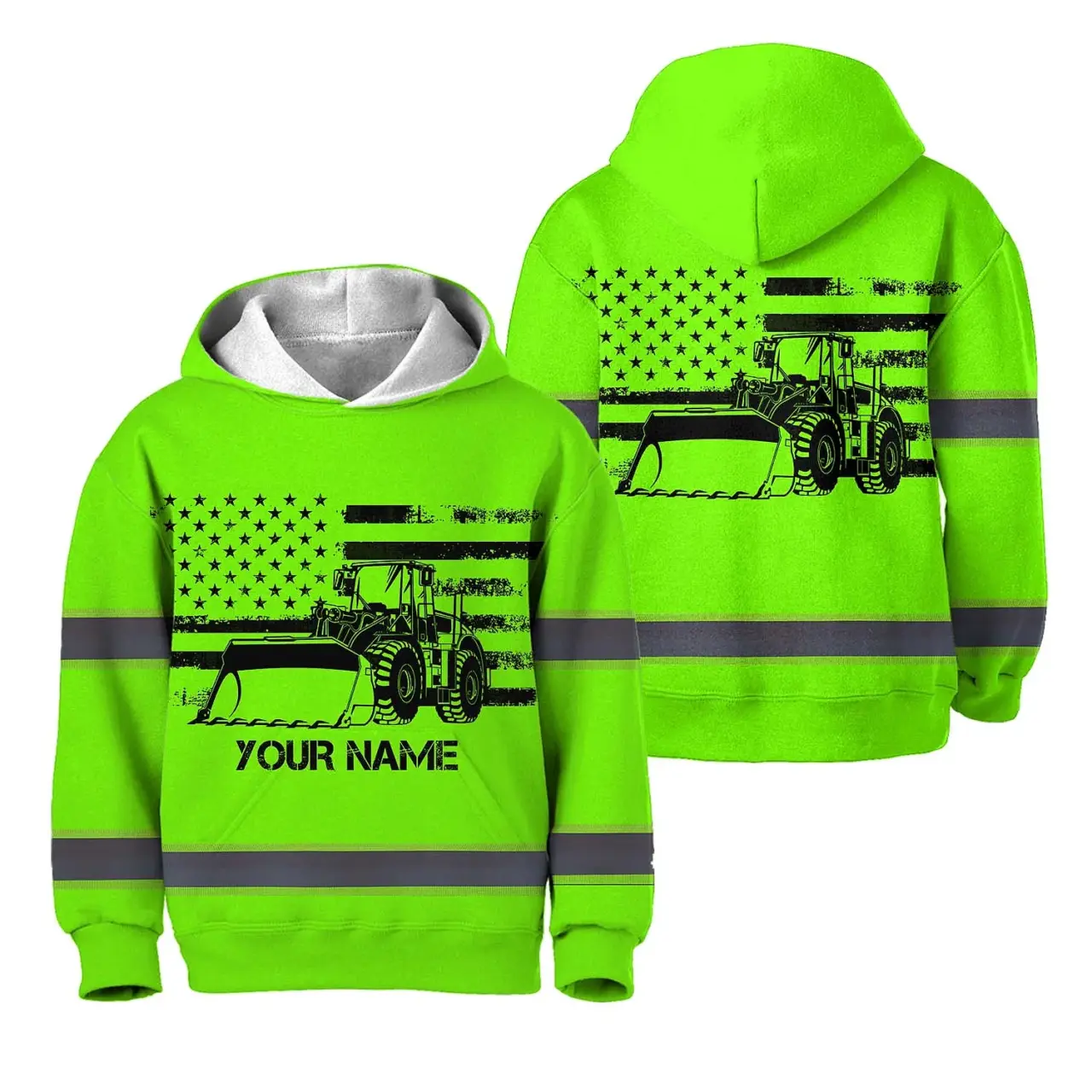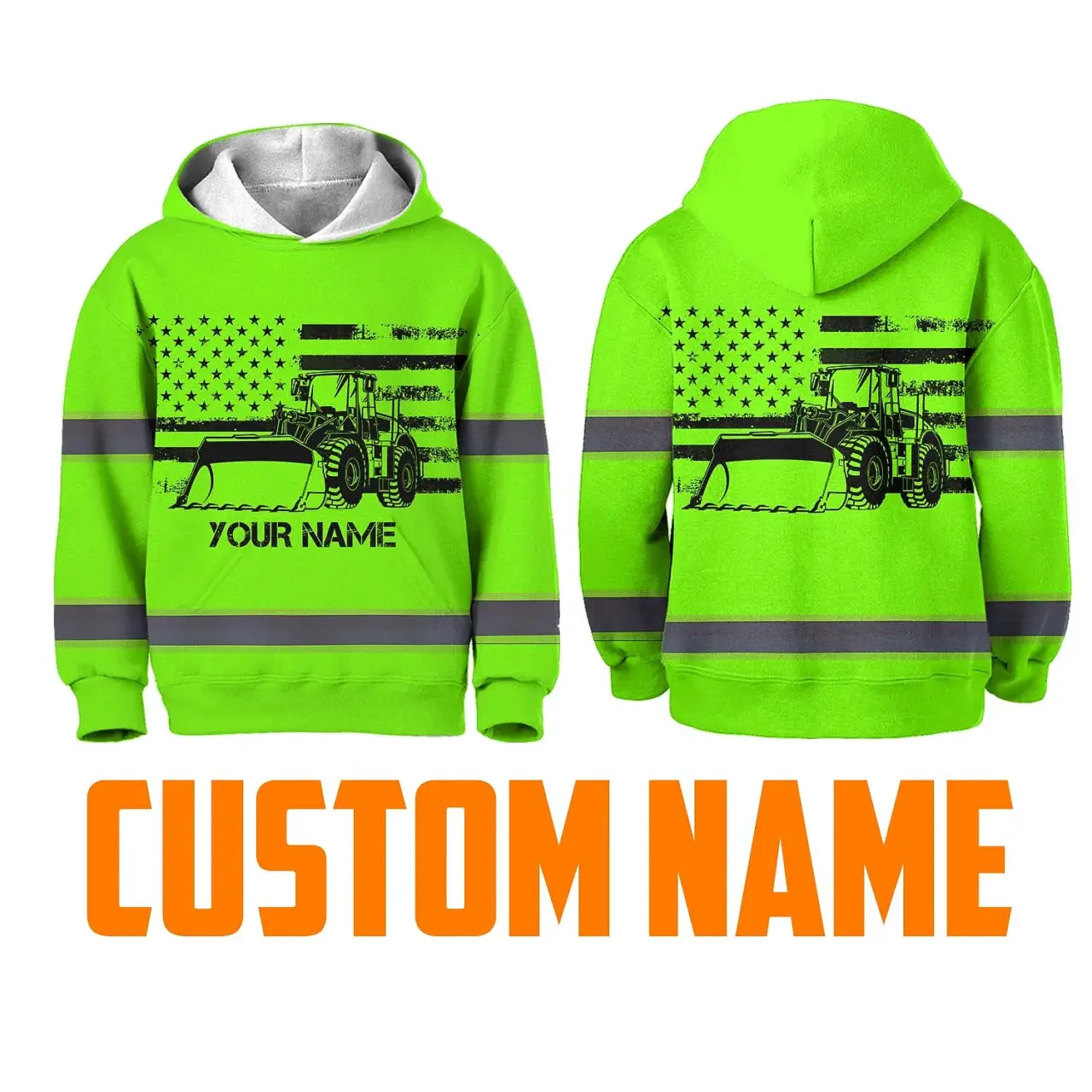 Hi Vis Hoodie Reflective Tapes Green Loader Operator Custom Name For Kids