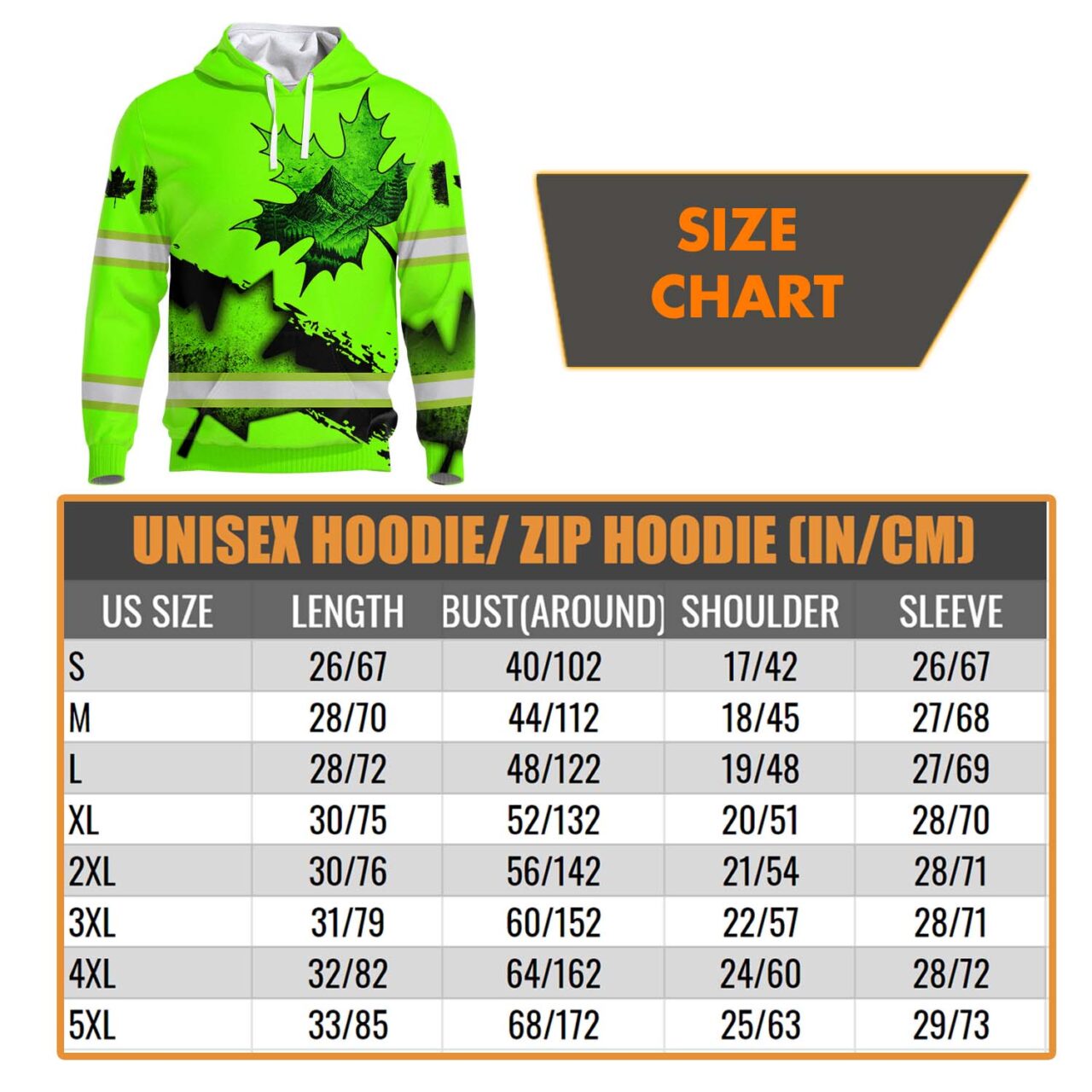 Hi Vis Hoodie Reflective Tapes Green Neon Black Canada Flag Paint Flakes Safety Workwear For Workers, Runners, Cyclists, Patriotic