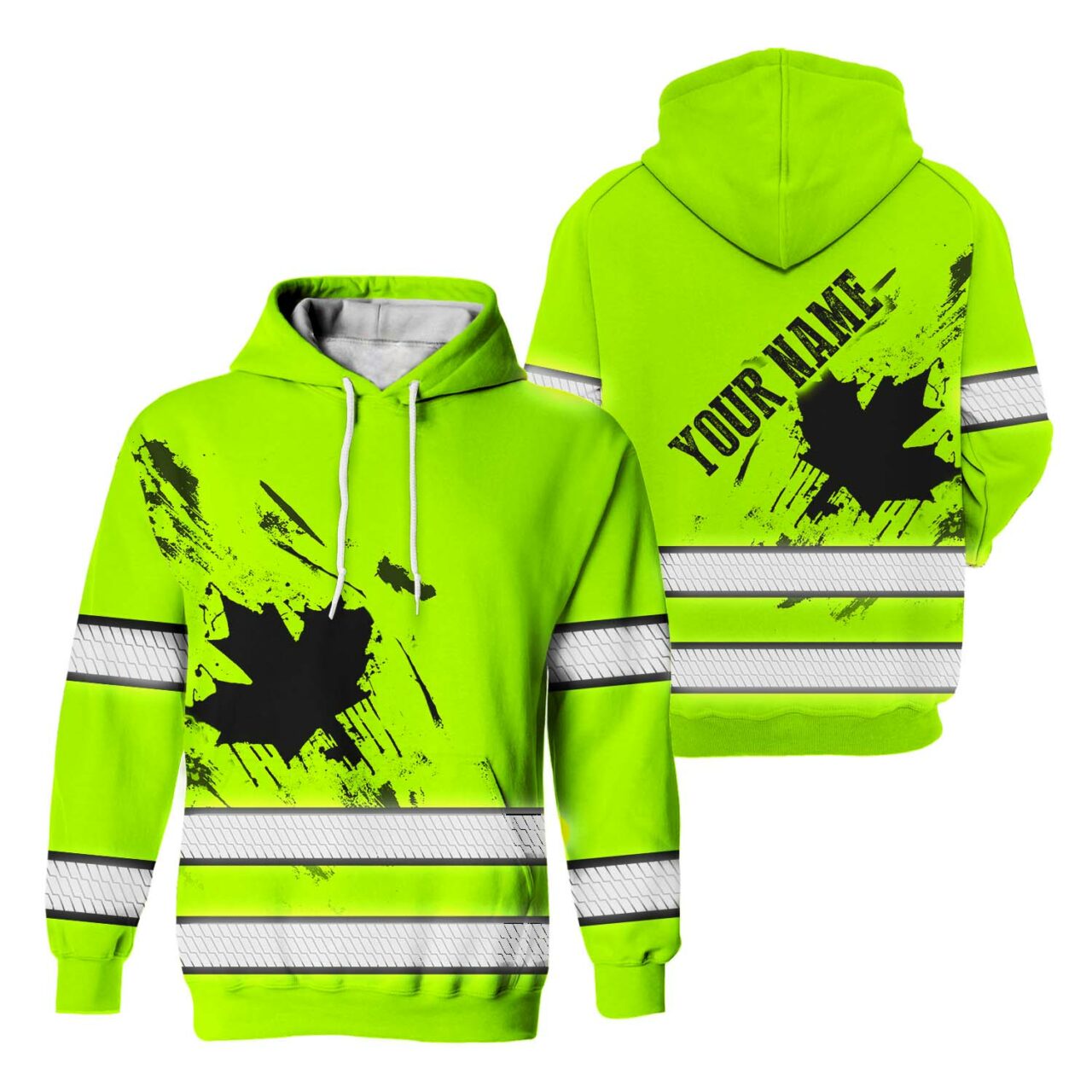 Hi Vis Reflective Green Custom Name And Logo Hoodie Safety Workwear