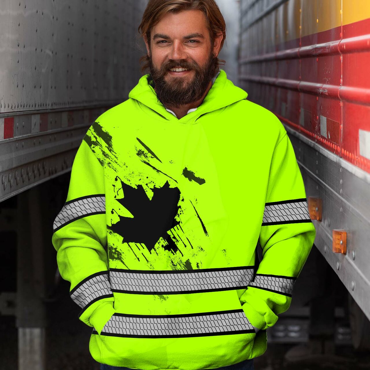 Hi Vis Hoodie Reflective Tapes Green Neon CA Flag