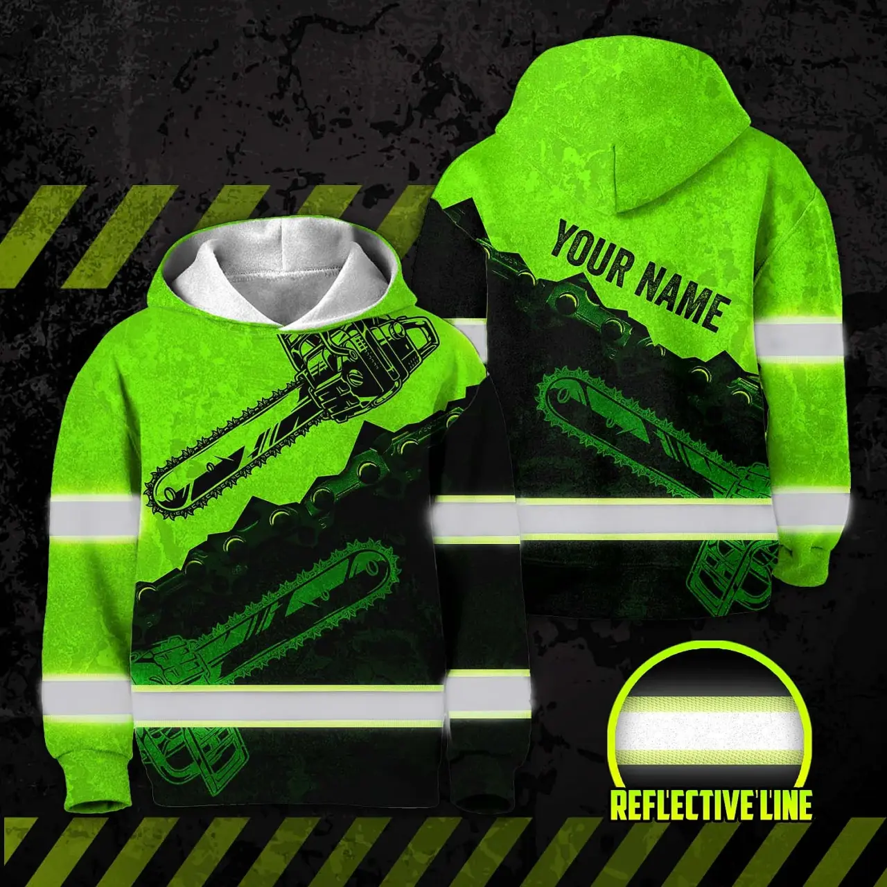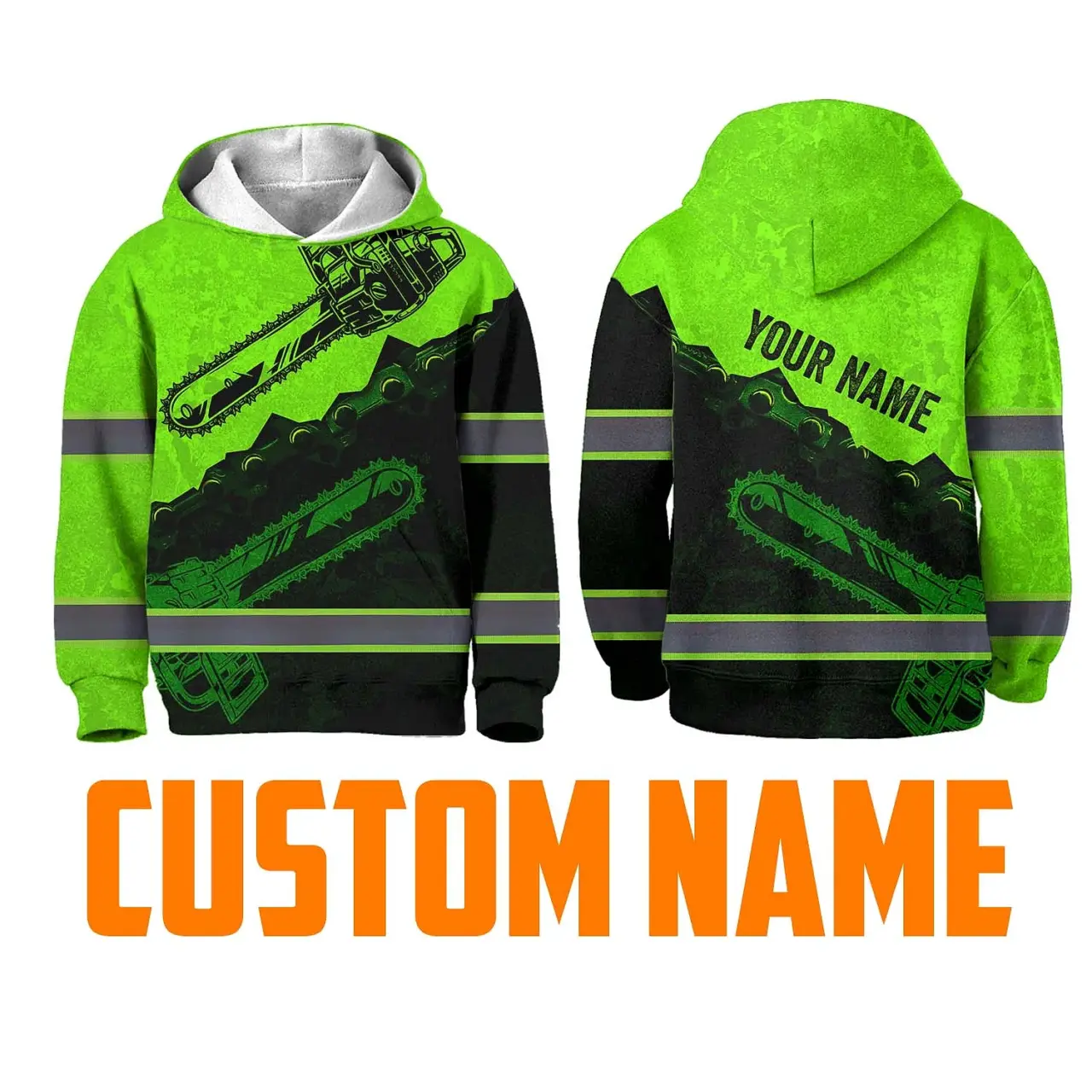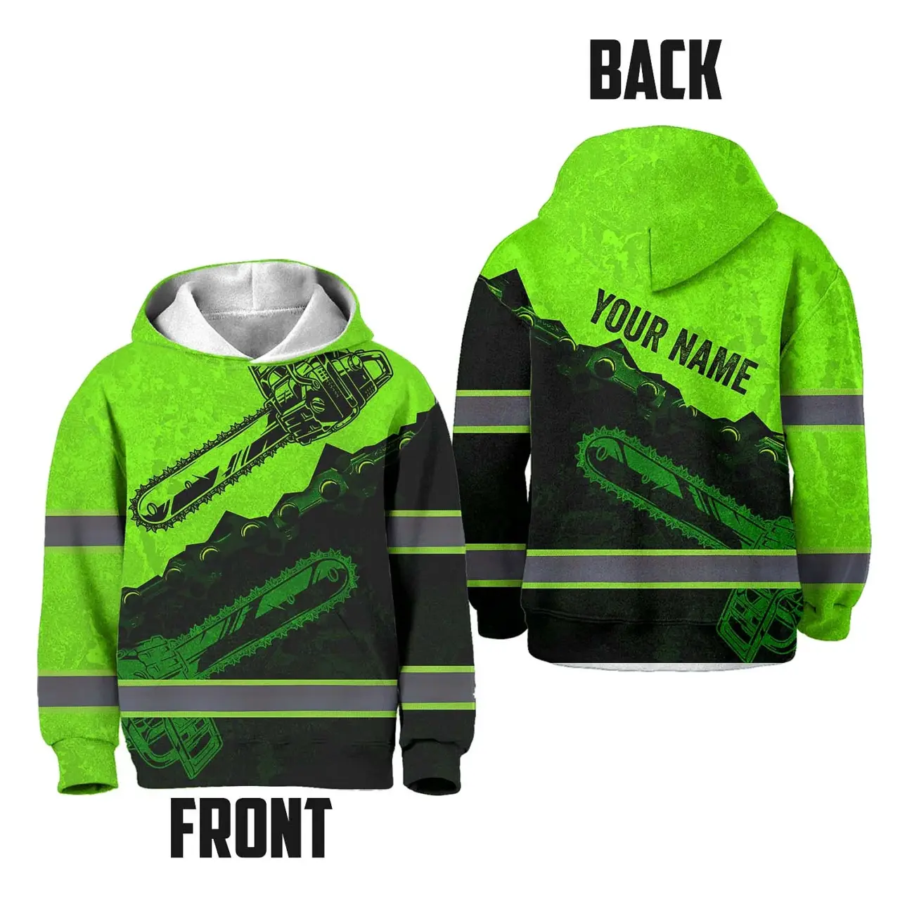 Hi Vis Hoodie Reflective Tapes Green Neon Chainsaw Logger Custom Name For Kids